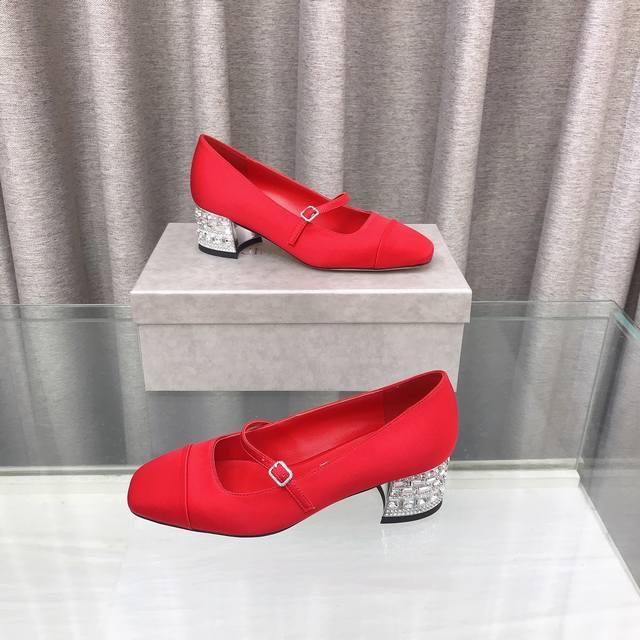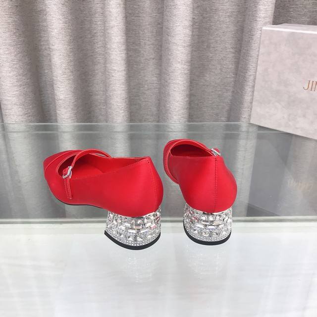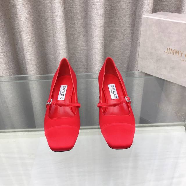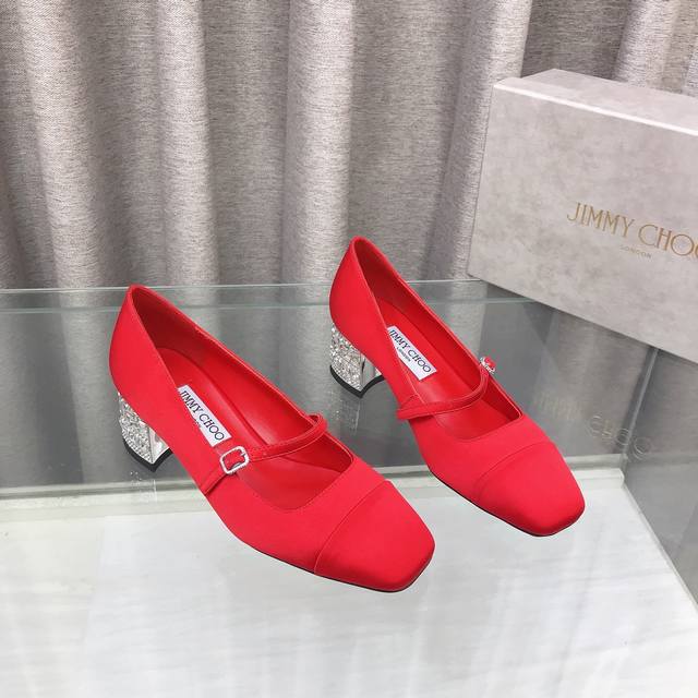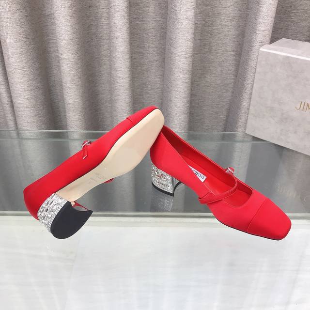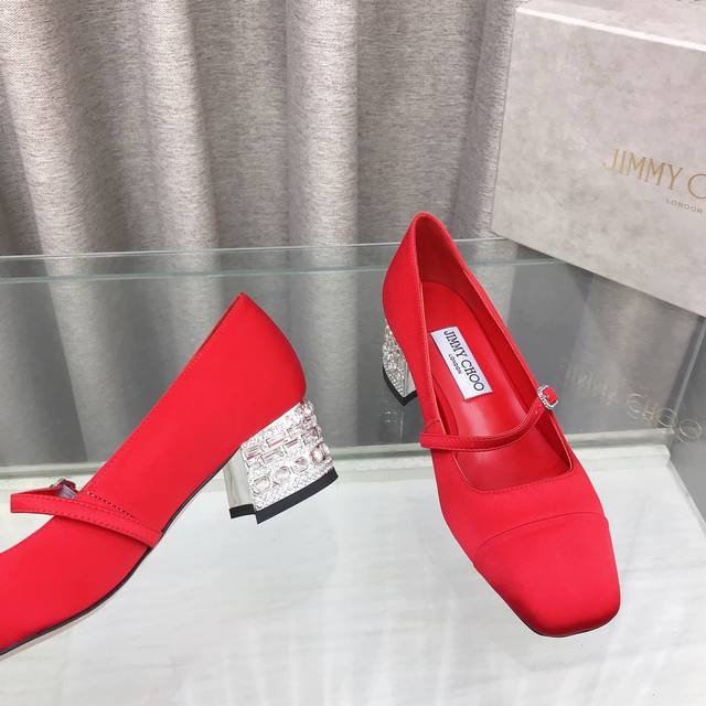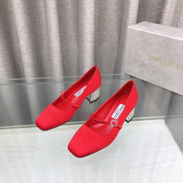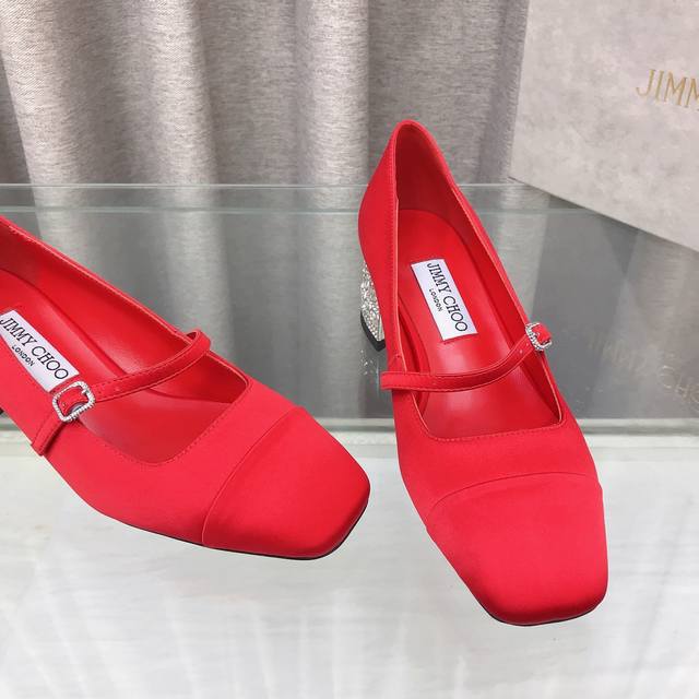 Jimmychoo 2026 This Mary Jane shoe features a square toe design with a chunky heel adorned with metallic rhinestones, offering a retro yet fashionable look. The upper is made of satin patent leather with high saturation, making it incredibly eye-catching! The twisted buckle detail is full of intricate details, ensuring comfortable wear and flattering the foot shape. The chunky heel design provides stability, making it suitable for commuting, dates, weddings, and formal occasions. Pair it with a dress or retro-style clothing for an instant style boost! Material: Bright red satin, black patent leather, white patent leather. Lining: Imported Italian lambskin, super soft and delicate. Outsole: Imported Italian raw cowhide sole. Sizes: 35-39, 34, 40, 41, 42 (custom sizes). Heel height: 4.5cm.