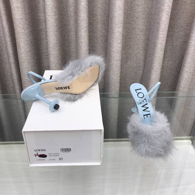 Latest Loewe 25Ss Autumn/Winter limited edition fur shoes, featuring the hottest colorways, truly exquisite fashion shoes with a subtle, alluring beauty. Made with delicate imported sheepskin and original deep-mountain fox fur, the leather feels like one piece to the touch. They even have a built-in heating function for a warm feeling in winter. Super light, super soft, and super comfortable, they look absolutely gorgeous on your feet! Highly recommended! Super fashionable, the most dazzling style in Paris, the same style worn by celebrities and bloggers! Material: Fox fur in black, blue, green, khaki, and burgundy (five colors) Lining: Imported sheepskin Heel height: 6cm, 10cm Outsole: Original genuine leather outsole Sizes: 35-39, 34, 40, 41, 42, 43. Custom sizes available.