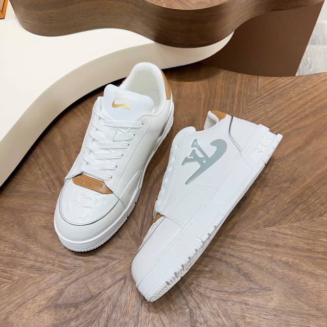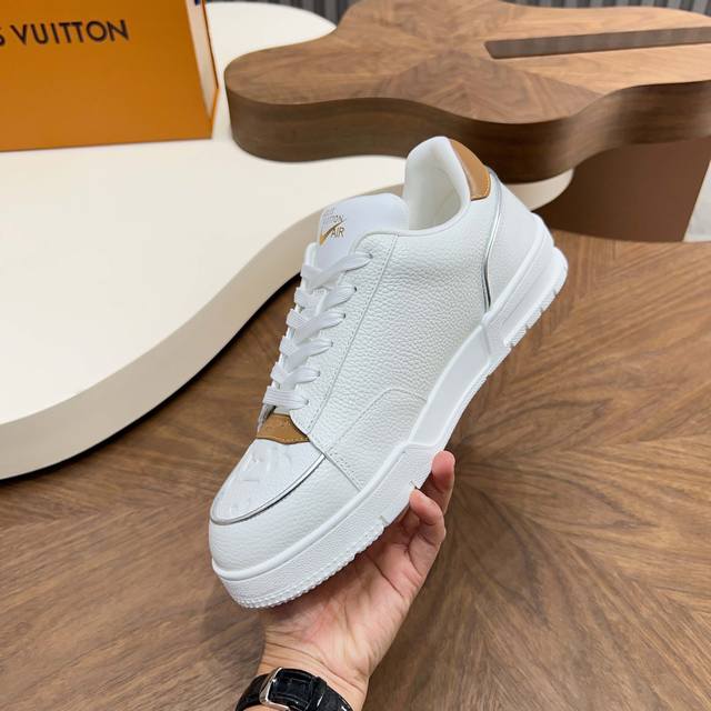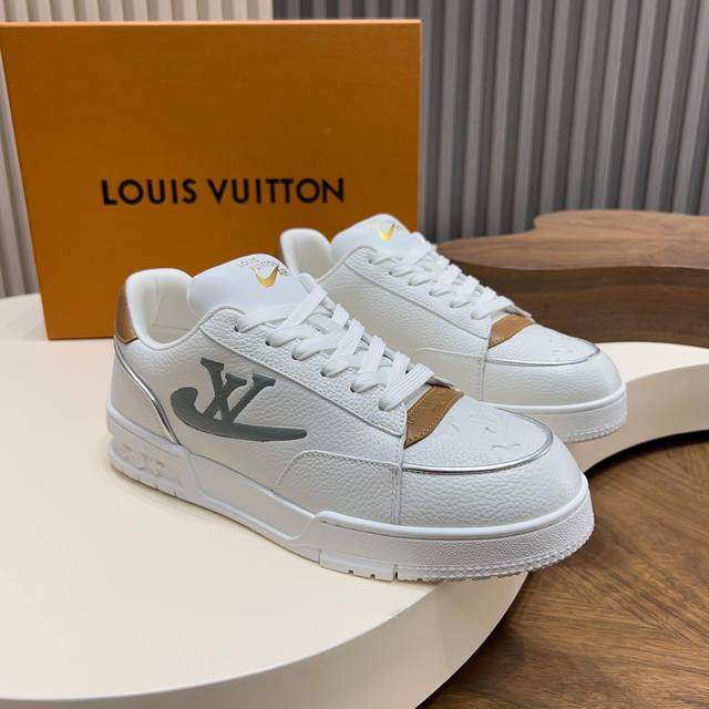 Louis Vuitton - High-end quality original casual sports shoes - Upper: Lychee-textured calfskin, Nappa calfskin, brand plastic logo stitched on tongue and body, brand logo silkscreened on heel - Lining: Nappa calfskin, insole; brand canvas - Outsole: Ultra-lightweight TPU foam; molded outsole - Super high quality control and exquisite workmanship: highlighting high-end luxury - Size: 39-44, 38, 45, custom orders available