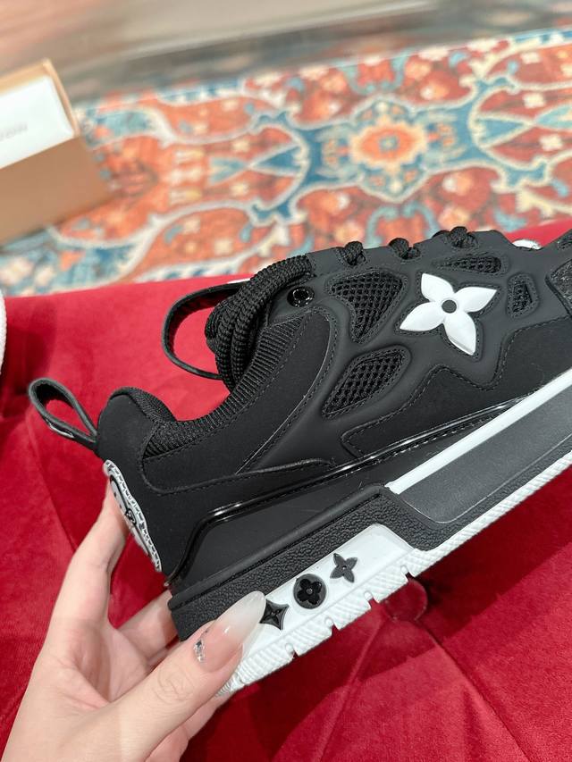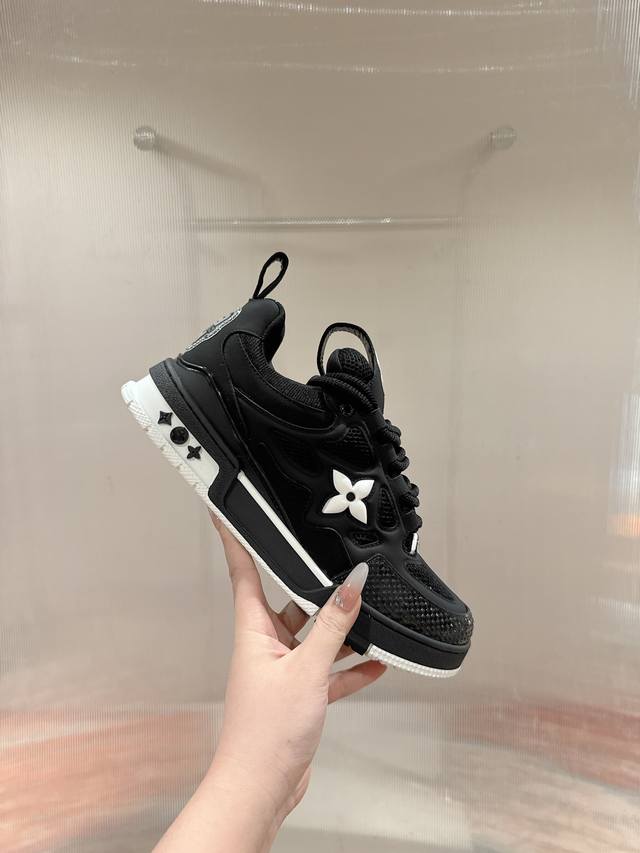 Louis Vuitton LV Skate Series Bread Shoes - Skateboarding Shoes - Basketball Shoes - Casual Sports Shoes. Top-tier original version, purchased and manufactured. The LV Skate series has continued the style of The View's professional skateboarding shoes since 1990s, maintaining the baggy silhouette of the 90s. Designers added playful elements, such as an open mesh tongue and exaggerated laces paying homage to Axion, Es, and DC. Unlike typical skateboarding shoes, this LVsk8 sneaker is made of nubuck leather with TPU trim and a Monogram texture. Finally, there are logos on the heel and tongue, as well as floral patterns on the sides. Material: Original custom top-grain cowhide + breathable mesh. Lining: Original imported breathable mesh. Sizes: Women's 35-40, Men's 39-44, Women's 40, Men's 45.46. Custom orders are non-refundable.