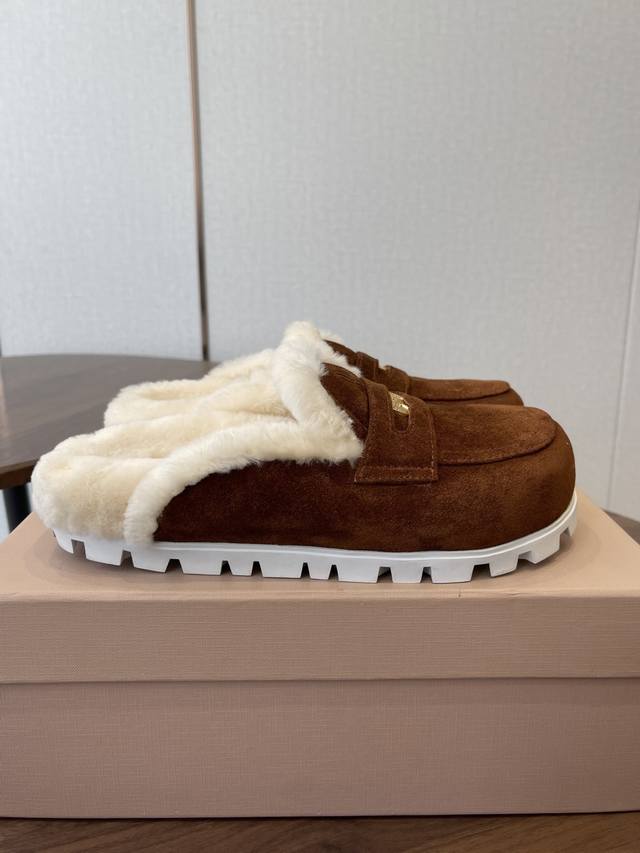 Miu Miu 25Ss Runway Gold Coin Toe Furry Slippers DDD A perfect match, easy to find in any store, so popular! Hot style with fashionable elements DDD The high-end feel of the gold coin element, easy to match for early autumn, unbeatable comfort, Miu Miu leads the trend with its fashion cycle DDD Upper: High-gloss cow suede with sheepskin trim Lining: Merino Australian textured wool Outsole: Original 1:1 rubber outsole DDD Size: #35-41 Sizes 40 and 41 are custom-made, no returns or exchanges DDD