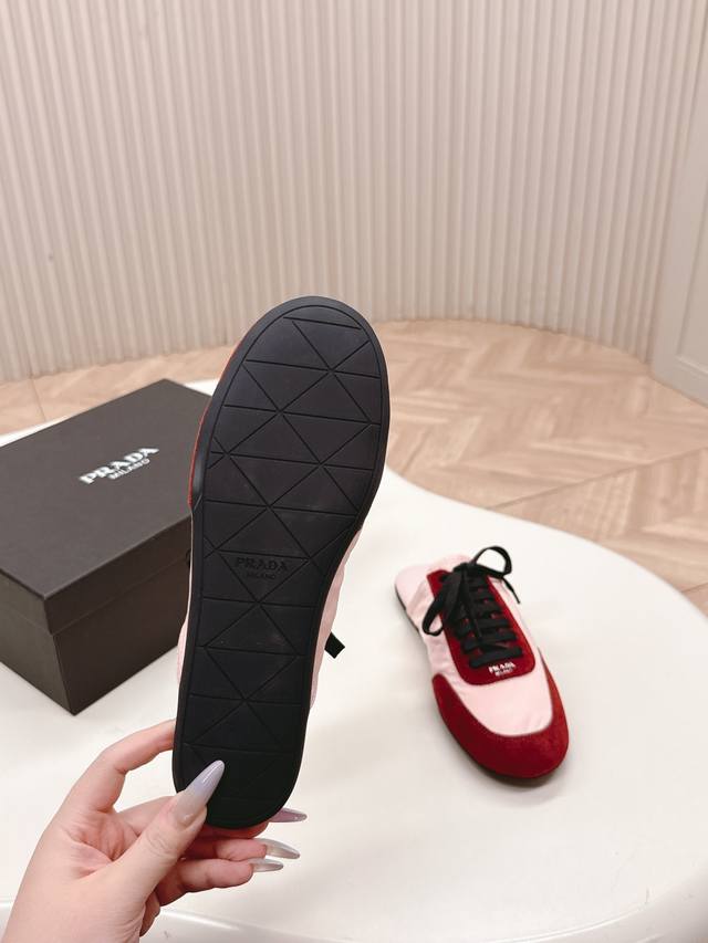 New colorway available: Prada Collapse Recycled Nylon & Suede Leather Elastic Slip-on, Spring/Summer 2025 Runway Style, a fashionable and lightweight casual slip-on. This ultra-lightweight sneaker features a three-dimensional shape crafted from recycled nylon and suede leather, showcasing Prada's sporty style and exquisite craftsmanship. The flat design with elastic side panels makes it easy to slip on and off. The upper is adorned with a screen-printed logo, a thin rubber sole, and a removable leather insole. A lightweight, comfortable, and practical casual shoe with an original molded rubber outsole! Available in multiple colors, combining the iconic Forrest Gump silhouette with signature Prada recycled nylon details for a refreshed look. Sizes: Women's 35-39 # 40.41 DDD