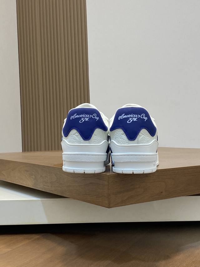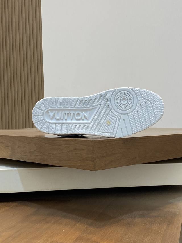 New colorway of Louis Vuitton Men's Trainer sneakers. This LV Trainer sneaker is made of soft grained calfskin, presenting a pure color. The brand was founded in 1854, and the designer's handwritten logo adorns one side. Designed by Virgil Abloh himself, this sneaker is highly commemorative. New Louis Vuitton Trainer Sneaker Low, casual sportswear, versatile basketball sneakers. Sizes: 39-44, 38, 45, custom orders accepted.