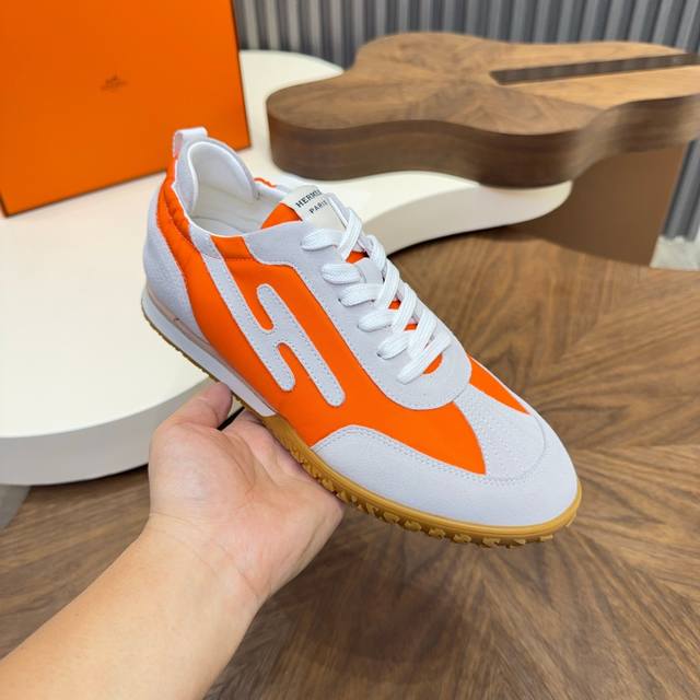 New Hermes Argande training shoes, white sneakers, perforated soft calfskin athletic shoes, with a sole adorned with classic Medor studs, creating a comfortable and casual style. Very lightweight and comfortable to wear. Real photos of men's athletic shoes. The most worthwhile Hermes men's athletic shoes to buy. Legend has it that you should buy them even without needing to purchase other items. Trendy, fashionable, comfortable, and versatile. Although the price has increased, it's still not expensive. The new colorways are all very nice. Men's style, not as many choices, but still very good-looking. Imported cowhide suede material, sheepskin lining, original molded outsole. Size: Men's 39-44, 38-45 (customizable).