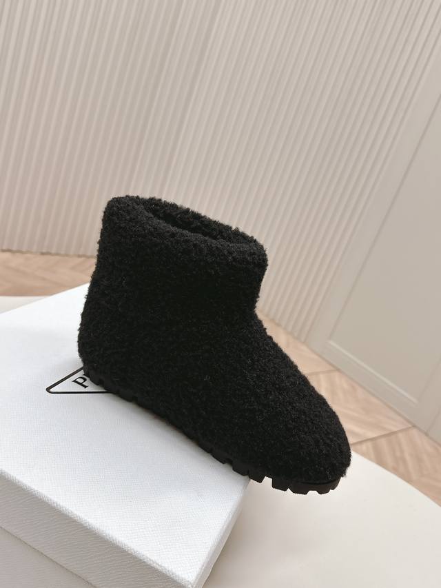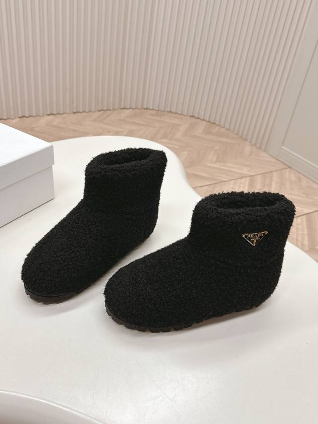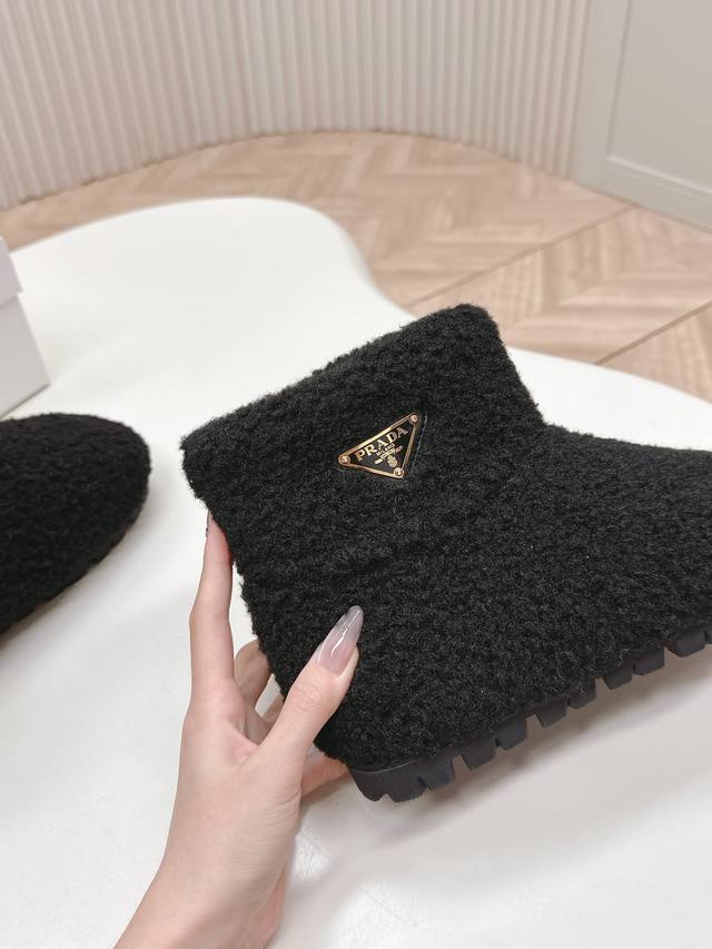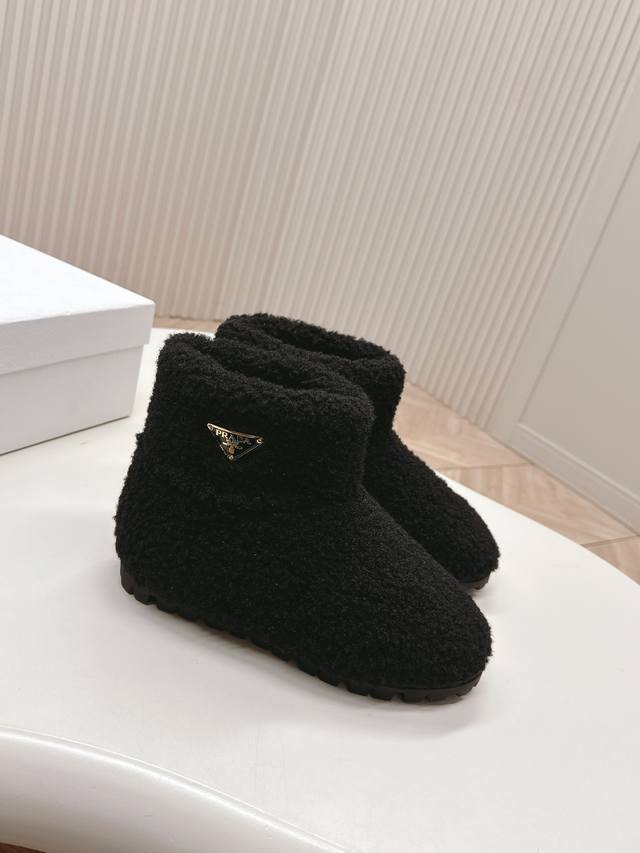 Prada Fall/Winter 2024 Furry Ankle Boots/Snow Boots. Classic triangle buckle, comfortable, cute, stylish, elegant, and versatile. Soft and comfortable wool, bringing warmth to autumn and winter. Comfortable for walking from morning to night. Easily adaptable to all seasons. Wool, original sole! Sizes 35-40 (DDD)