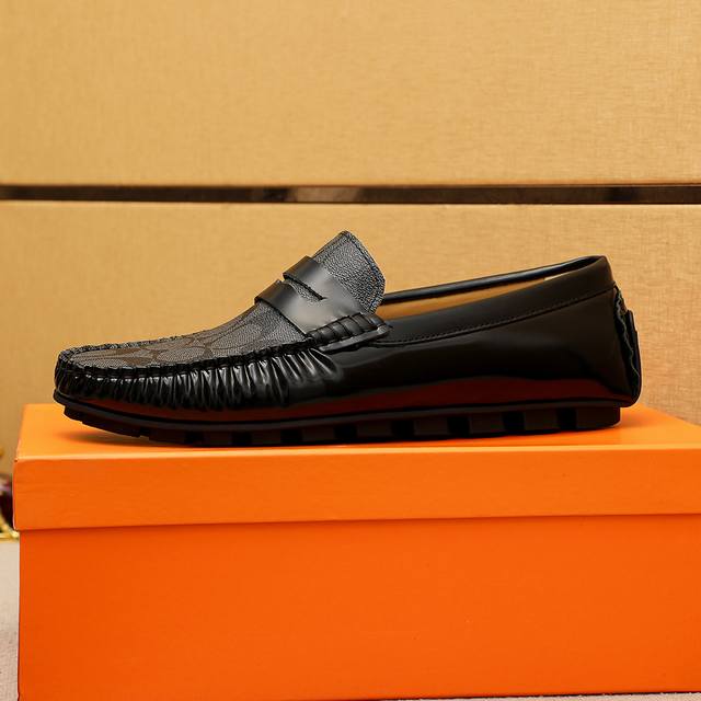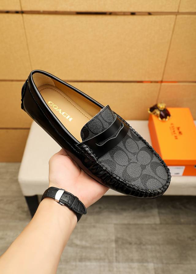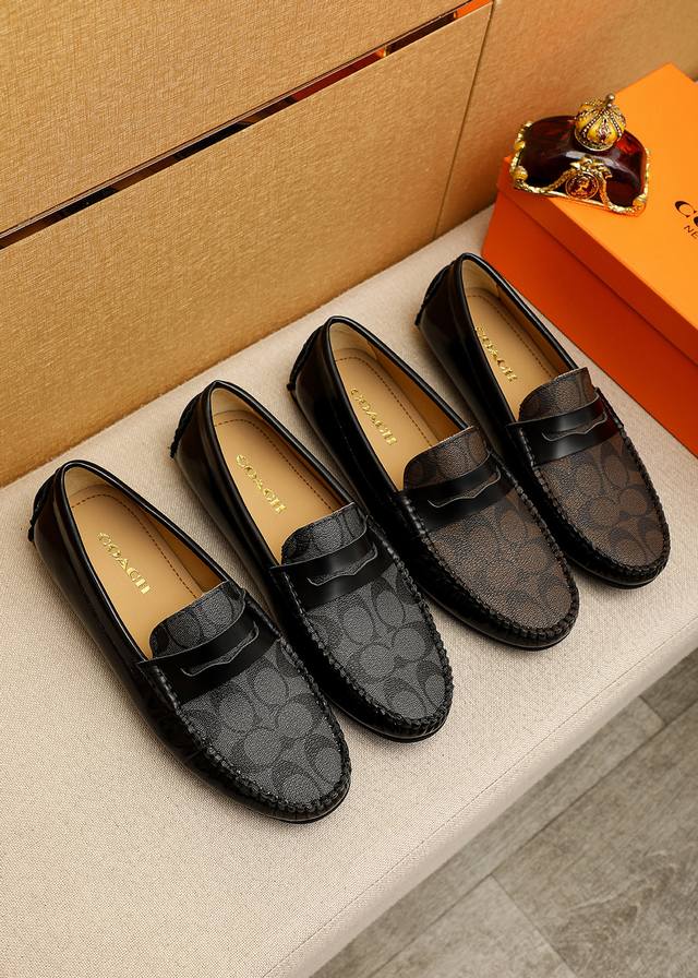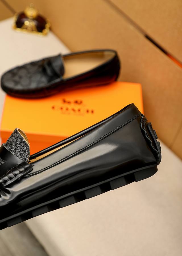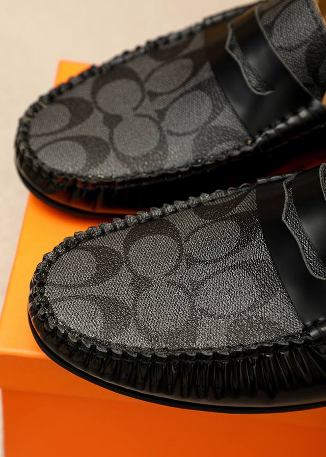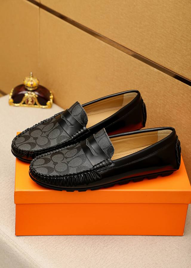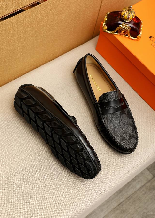 Product Trademark: Coach Loafers True to Size: 38-44, 45 (Made to Order) Materials: Selected top-grain monogram cowhide upper + luxurious hardware buckles, imported sheepskin lining. Strong 3D visual effect, original outsole. Colors: 2 colors available.
