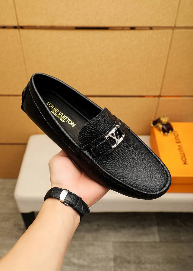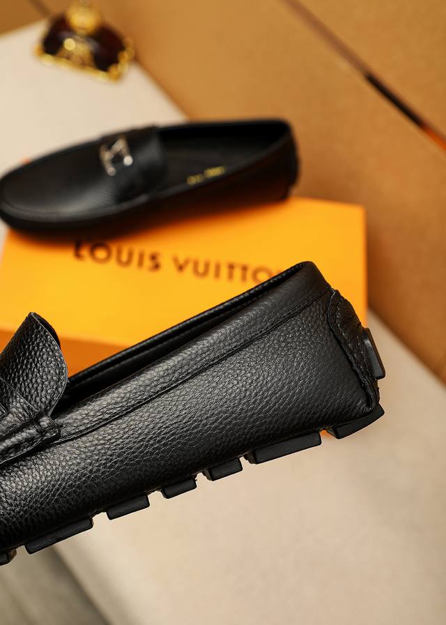 Product Trademark: Louis Vuitton Loafers True to Size: 38-44, 45 (Made to Order) Materials: Selected top-grain pebbled cowhide upper + luxurious hardware buckles, imported sheepskin lining. Strong three-dimensional visual effect, original outsole. Colors: 2 colors available.