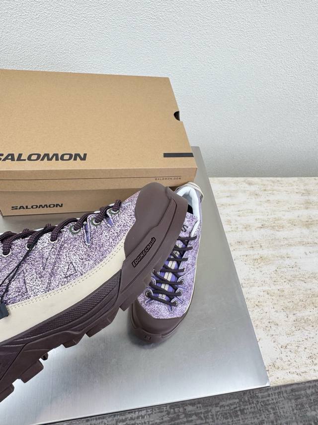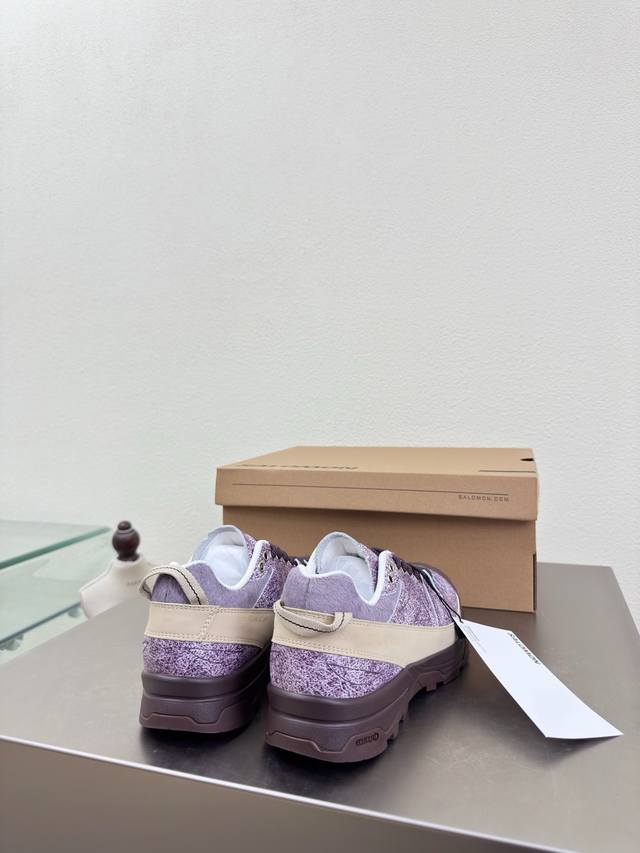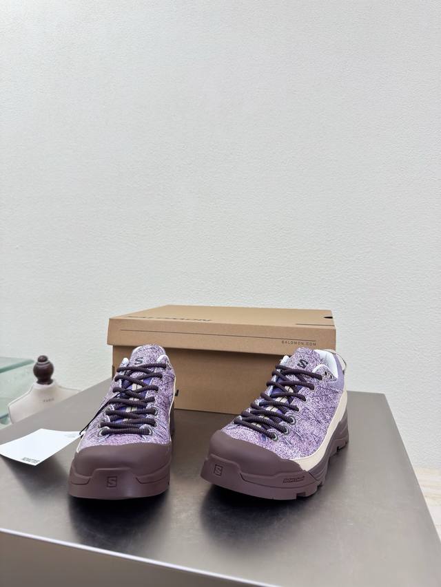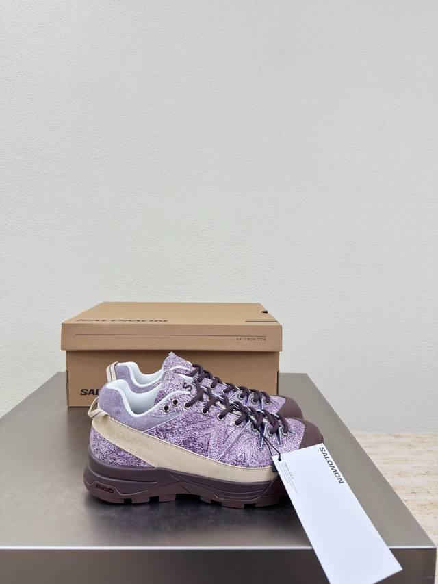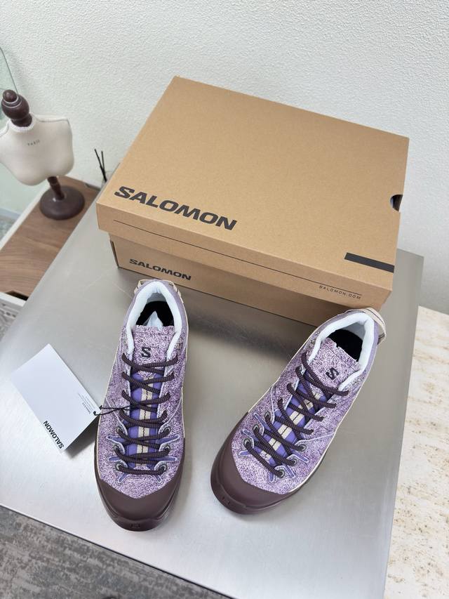 Salomon Hiking Boots, Men's and Women's Rock Series, Single Item. Men's Size 10, Danxia Purple. Upper: Grvl version with tighter weave, outer rubber sealant provides stain and water resistance, excellent breathability. Wider toe and midfoot for a wider fit. High-elastic semi-inner bootie tongue, stitched to the upper, elasticated tongue collar for outdoor use, effectively preventing sand and gravel from entering. Lacing: Stiff flat rib design with a medium-strength, hard heel counter and honeycomb reflective material. Plenty of foam padding. Insole: 4mm Orthoiite molded insole. Outsole: Mountaineering-grade rubber outsole with supercritical foam popcorn material, a technological outsole that feels like wearing foam