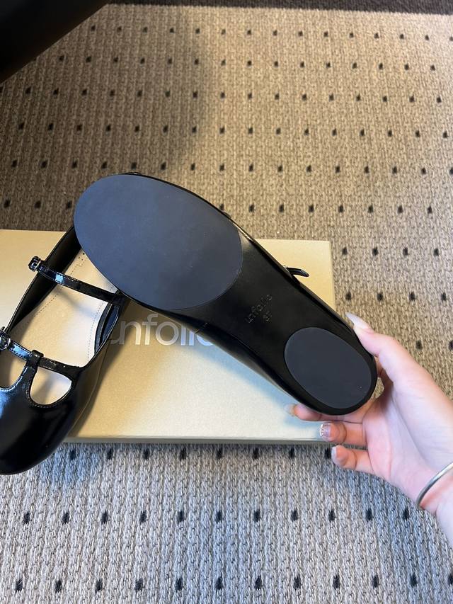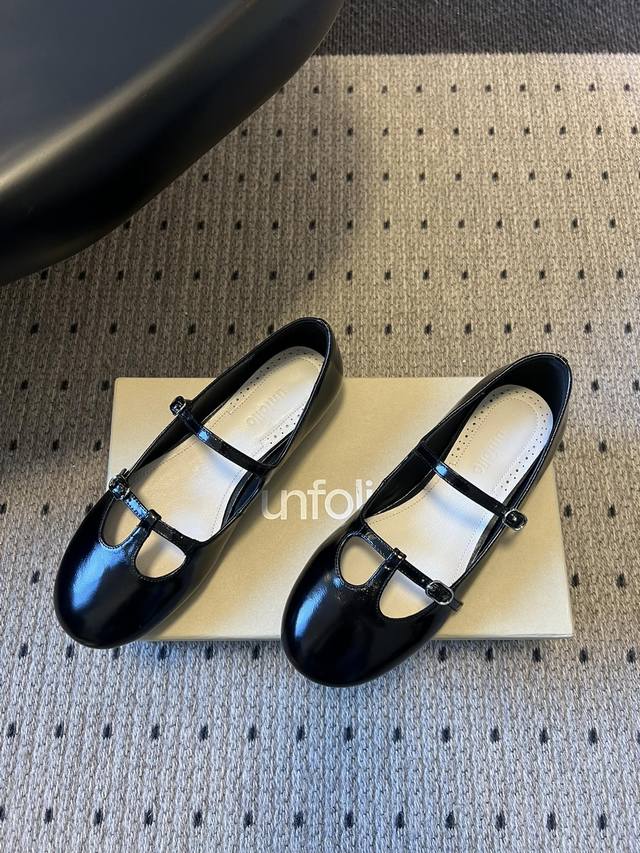 Unfolio 26Ss T-strap Mary Jane Flat Shoes DDD Featuring the classic T-strap Mary Jane design, double thin straps, and a metal buckle, these shoes exude a strong retro feel. The flat design and rounded toe conform to the foot shape, combining French elegance with everyday practicality. DDD The shoe body is free of excessive embellishment, with simple leather trim and metal buckles as accents, showcasing exquisite craftsmanship. The light-colored breathable lining enhances comfort, and the smooth lines of the shoe embody a minimalist retro design philosophy. DDD Upper: Split leather Ddd Lining: Sheepskin Ddd Outsole: Rubber outsole Ddd Height increase: 2cm Ddd Size: 35-41, sizes 40 and 41 are custom-made and non-refundable DDD