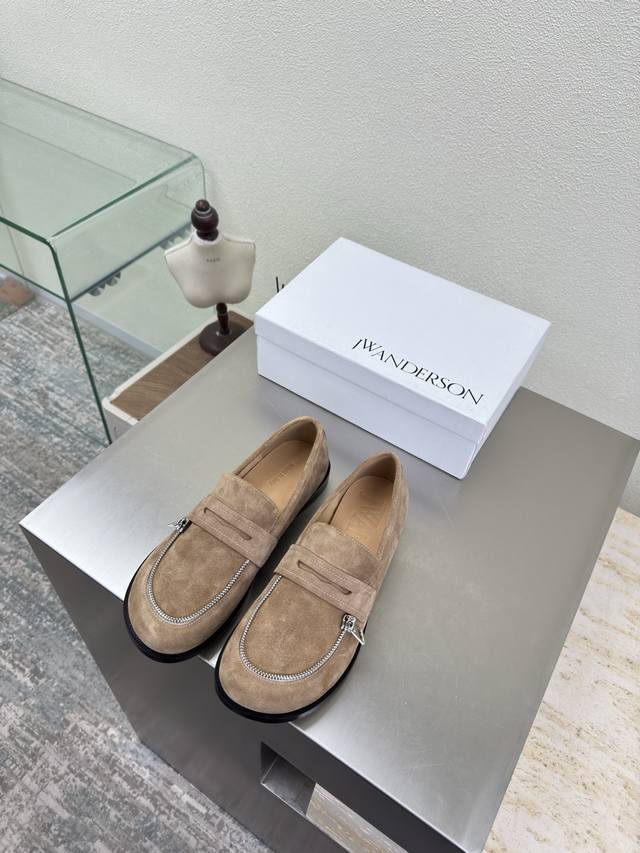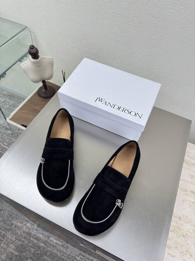 Zippered Loafers, JW Designer Brand Women's Shoes, Black & Apricot, High-End Style, Non-Slip Outsole, Subtly Charming. The addition of Ddd elements injects more rebelliousness and strength into the exquisite shoe body, showcasing a slender yet far from weak stance. Sizes: 34 35 36 37 38 39 40 41. Customized with Original Packaging.
