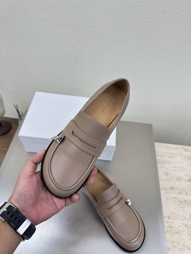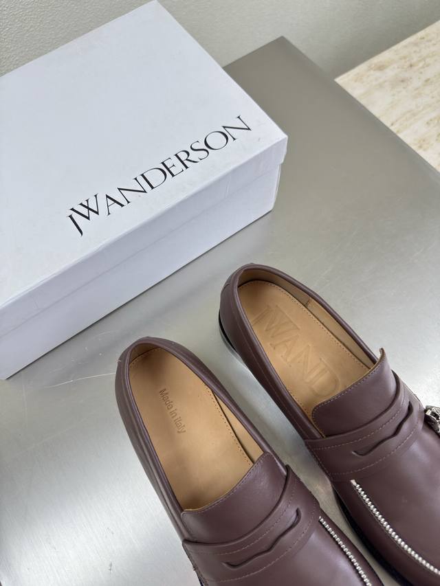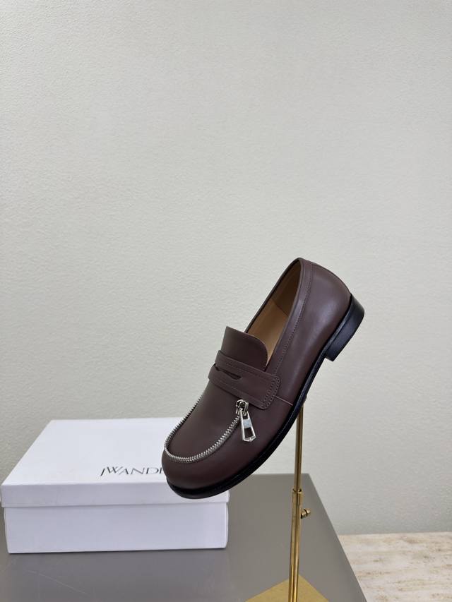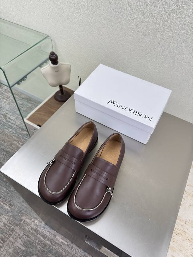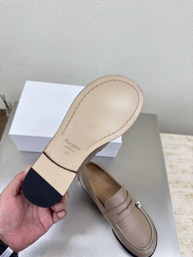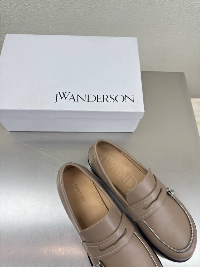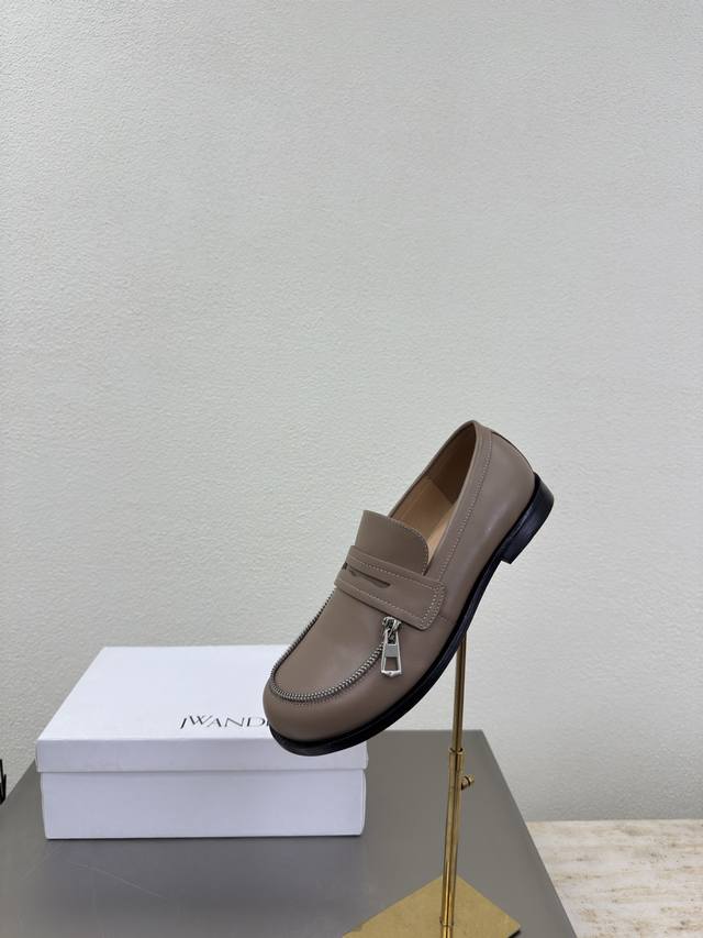 Zippered Loafers, JW Designer Brand Women's Shoes, Khaki Leather, High-End Design, Non-Slip Outsole, Subtly Charming. The addition of Ddd elements injects more rebelliousness and strength into the exquisite shoe body, showcasing a slender yet far from weak stance. Sizes: 34 35 36 37 38 39 40 41. Customized with Original Packaging.