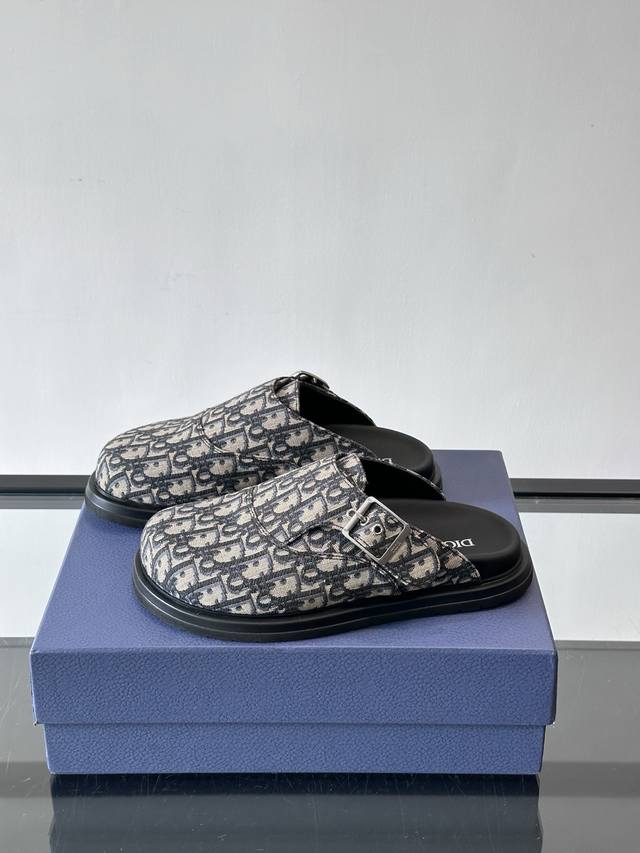 38-44 .45.46 Custom Dior Oblique print closed-toe mules, featuring the classic monogram pattern and a black Eva sole, understated yet sophisticated! The closed-toe design and metal buckle add to the overall attention to detail, ensuring a comfortable and secure fit. Perfect for everyday wear or casual occasions. The Oblique print is a signature Dior element, highly recognizable and exuding style