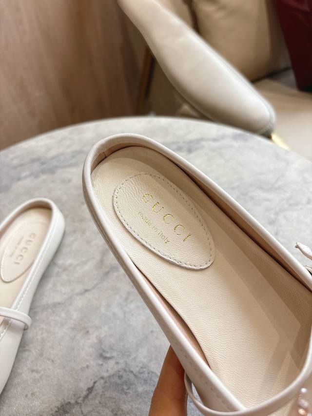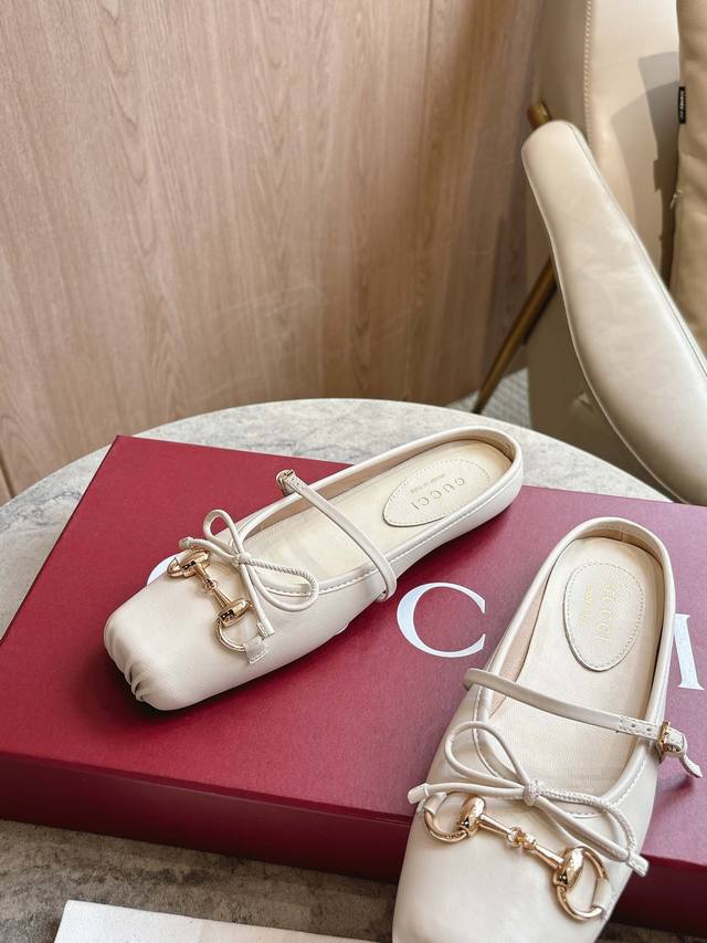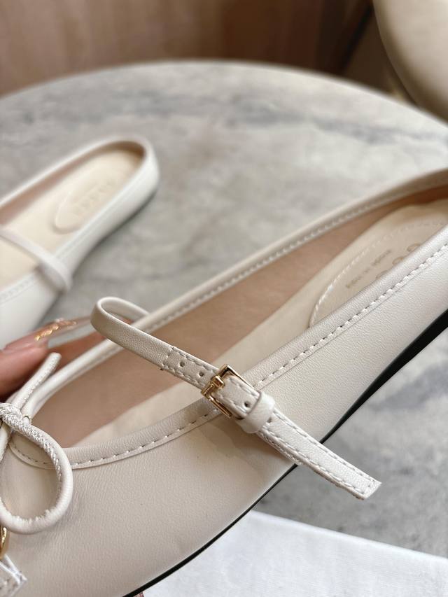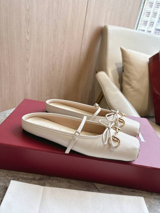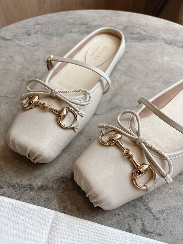 9099-1C White ?35-42 2025 Fall/Winter Collection. This horsebit flat ballet mule features a square toe design with elegant bow details, paying homage to traditional ballet shoe styles. Crafted from leather and adorned with light gold hardware, the "Sacchetto" construction ensures exceptional comfort. Features include: White leather, Light gold hardware, Leather lining, Horsebit detail, Leather bow detail, Leather sole, "Sacchetto" construction, Soft padded insole, Lace-up design with adjustable buckle, Flat sole.