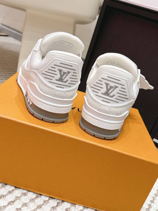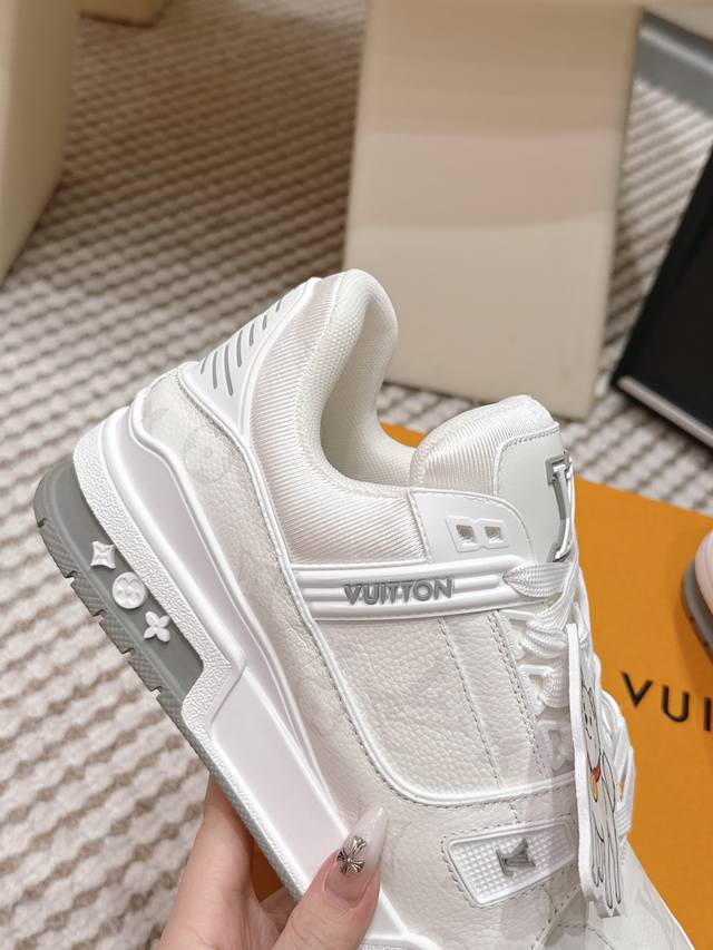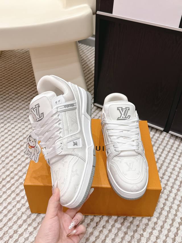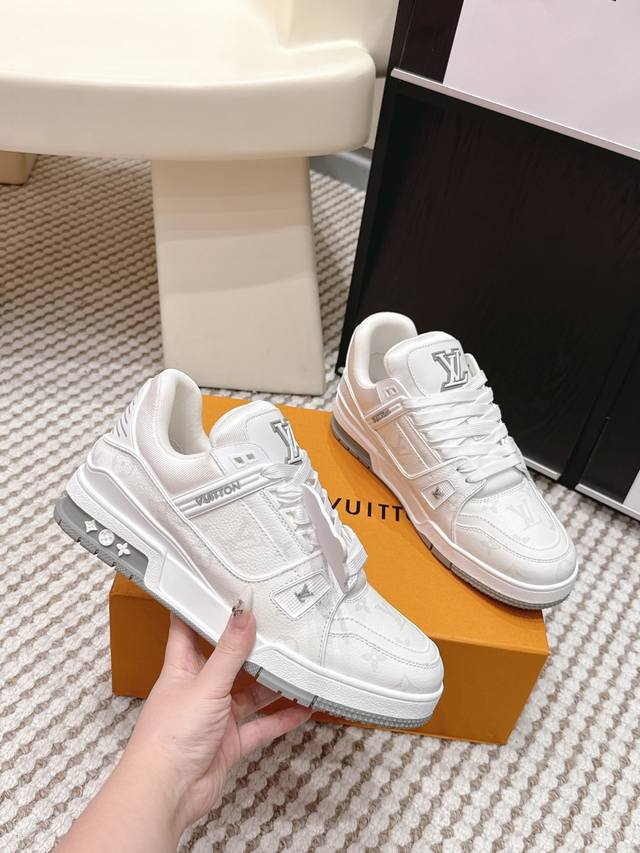 A must-have for couples! New colors of LV (Louis Vuitton) shoes available now! Classic LV collection! LV Trainer PVC sneakers, every style and colorway is amazing! The Trainer feels incredibly comfortable, with a constantly updated silver version, and it's been trending on Xiaohongshu (Little Red Book) among couples! Made with the exact same materials and craftsmanship as the original, a 1:1 comparison! Features a complex combination of various leather and TPU fabrics, and an original TPU outsole. This is a high-quality, not ordinary material! Sizes: Women's 35-40, Men's 38-46. Comes with full retail packaging!