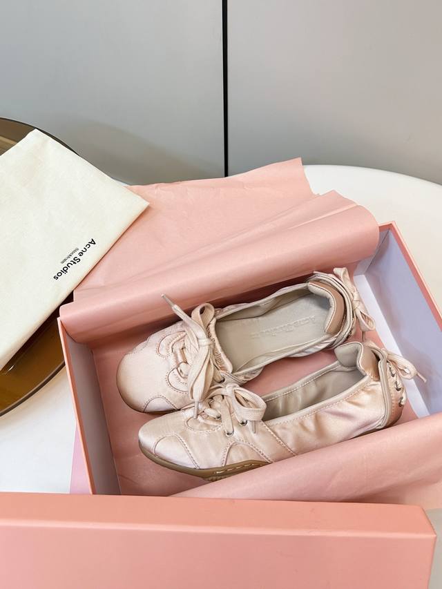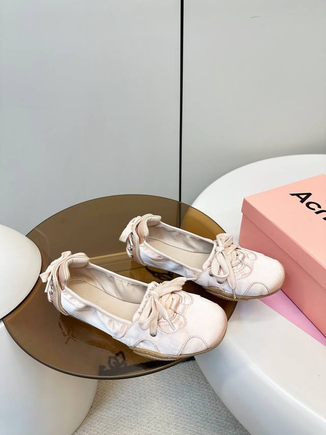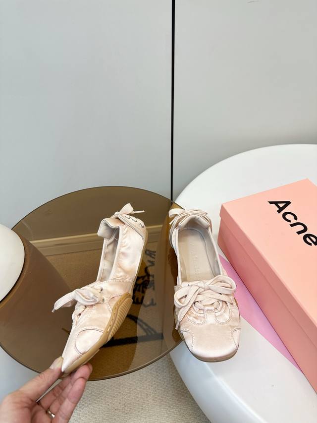 Acne Studios Satin Bow-Tie Ballet Flats DDD These Acne Studios satin ballet flats are absolutely gorgeous! The bow-tie design on the upper is elegant and vintage. The flat design makes them comfortable for everyday wear, lightweight and easy to walk in. They pair easily with skirts or casual pants, exuding a French romantic vibe. Ddd The soft sheepskin lining ensures comfort even after long wear. A must-have for sophisticated girls! Ddd Upper: Silk fabric Ddd Sheepskin lining Ddd Original molded rubber outsole Ddd Sizes: 35-40 40.41 Custom made DDD