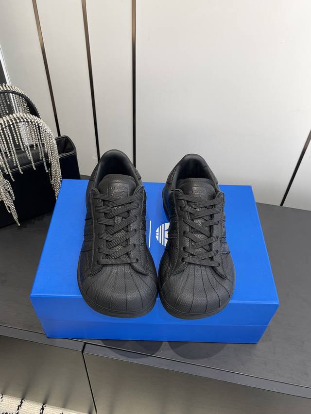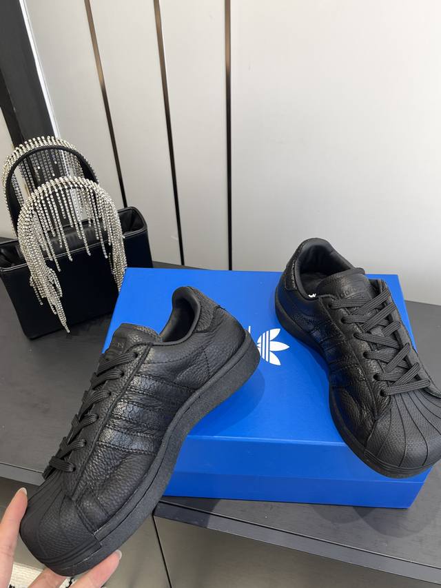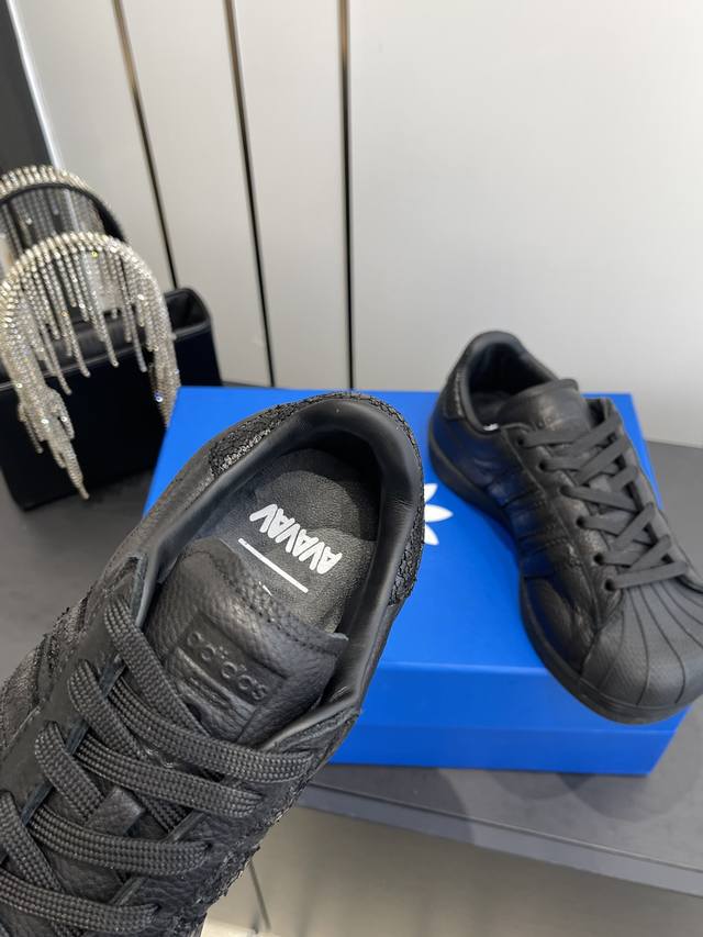 Adidas x Avavav 25Ss Shell Toe Skate Shoes. Unlike the previous collaboration, this time the shell toe is enlarged and widened, becoming the complete "square-toe shell toe," perfectly blending fashion and sporty style. The last and toe are widened, and the lining, tongue, and insole are all high-quality leather, with all leather surfaces being top-grain cowhide. Now it truly is a square-toe "leather shoe." The retro feel is best in white and red, but if you need versatility, black won't disappoint. It's definitely a top choice for skate shoes. The shoebox is also a unique top-and-bottom box with a distorted shape that gives it a funhouse mirror feel. A collector's item for true blue-blooded sneaker enthusiasts. Sizes: 35-40, 40 custom-made.