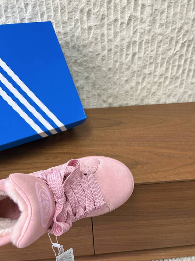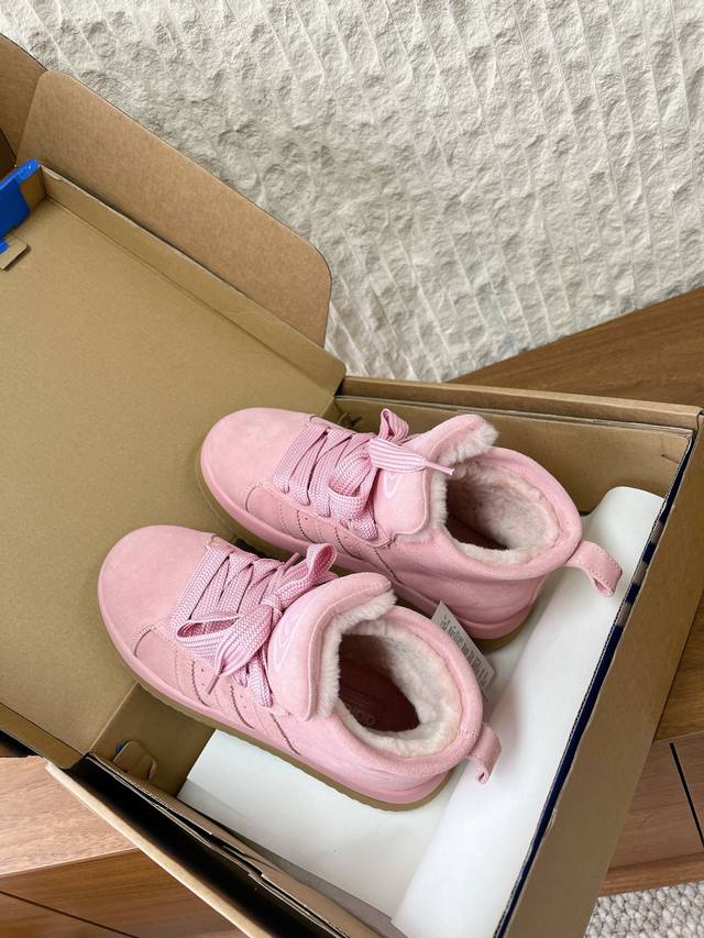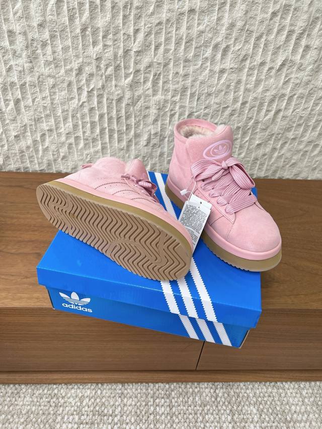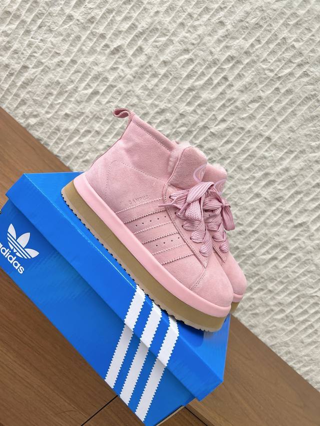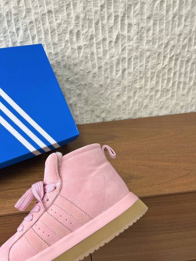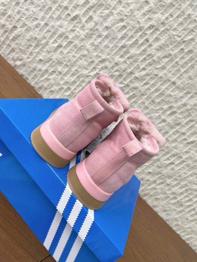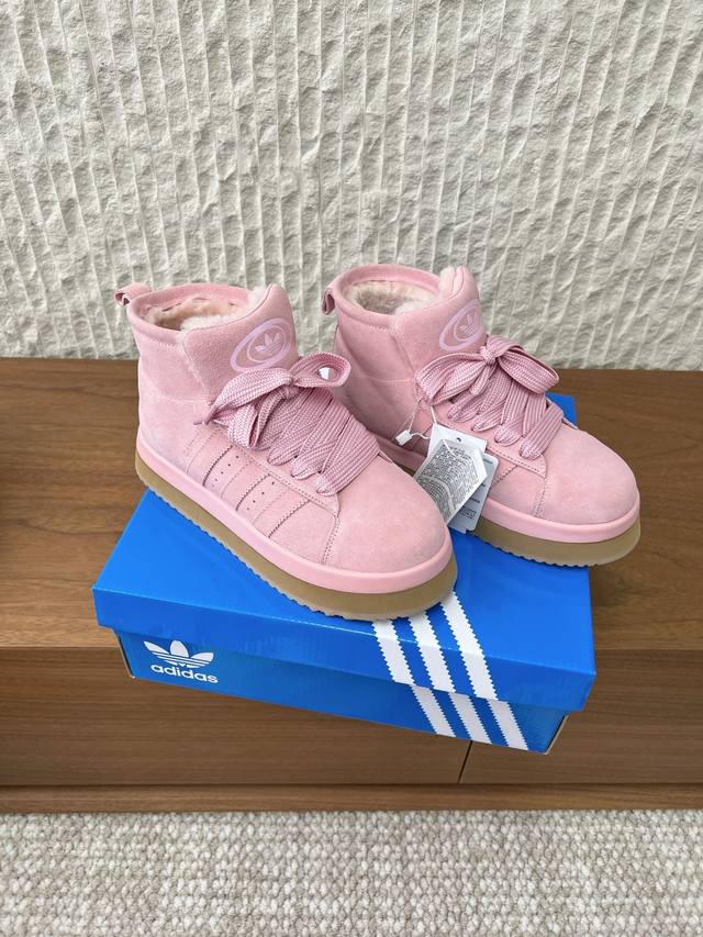 G119 Adidas Originals 25Ss Autumn/Winter New Style Thick-Soled Fleece Half-Mount Snow Boots. Available in white, pink, brown, black, and other colors to meet different style needs, suitable for sweet, retro, or minimalist styles. High-top design provides good ankle support and protection; bow design at the laces adds sweetness and fashion. Thick sole not only enhances the overall look but also provides a slight height increase. Material: Original patent leather suede; Lining: Wool; Heel height: 3.5cm; Outsole: Original custom rubber combination outsole; Size: 35-39 (Size 40 is custom-made and non-refundable).