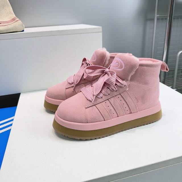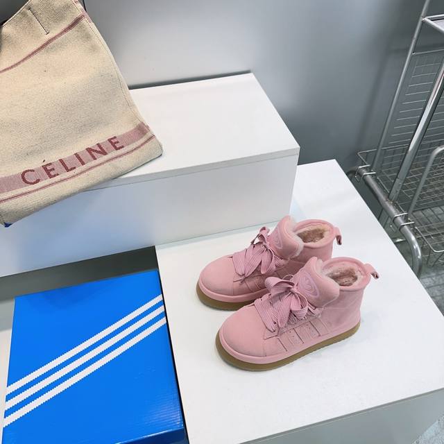High-quality snow boots! Top quality Adidas Originals 25Ss Autumn/Winter New Thick-soled Warm Wool-lined Half-length Fleece Snow Boots! Helping you easily cope with the cold. Soft and comfortable lining for warmth, with a thoughtfully designed outer side to keep delicate feet dry. Durable design, suede upper for effective weather protection, and a wide opening for easy on and off. Imported wool, thick wool lining for a soft feel, helping to keep feet warm in cold weather! Versatile, comfortable, stylish, and warm! Sizes: 35-40. Size 40 is custom-made and non-refundable. Comes with original packaging.