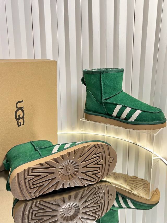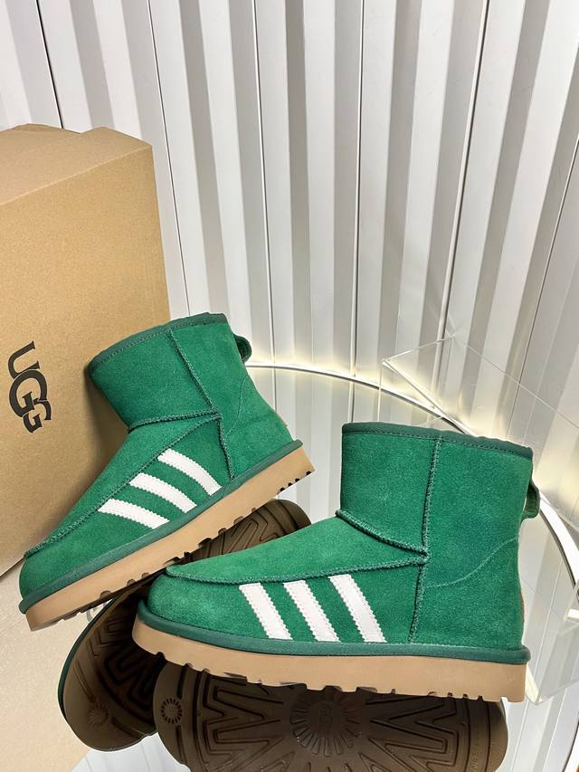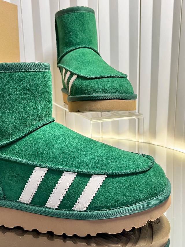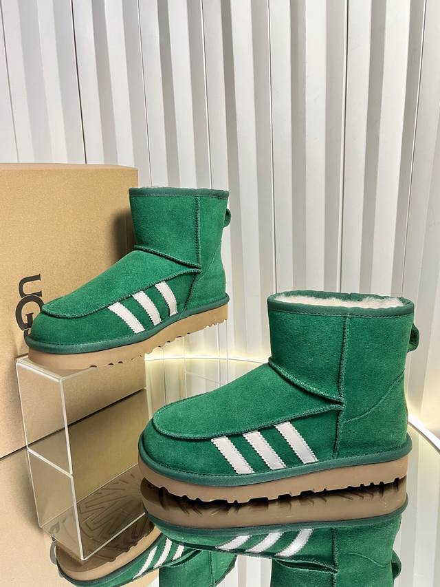 Retail-grade DDD Sports-style Ugg x Adidas 25Ss Autumn/Winter Warm Snow Boots DDD The upper is made of suede, and the lining is filled with wool, achieving a combination of warmth and texture. The mid-calf boot style with side buckle design not only enhances the style but also allows for adjustment of the boot shaft shape according to the wearer's needs, such as folding it over to change the style. The platform sole design also provides a height increase, suitable for winter cold-weather scenarios, and can be matched with various styles such as casual and streetwear. DDD Ugg is famous for its sheepskin snow boots. This buckle style is an extension of the brand's classic product line, retaining the core genes of "warmth and comfort" while enhancing its fashion attributes with details such as metal buckles. It is often the choice of celebrities and trendsetters in autumn and winter. DDD Upper: Cowhide Suede Lining: New Zealand Imported Wool Outsole: Rubber Combination Outsole DDD Size: 35-40 Size 40 is made to order and cannot be returned or exchanged DDD
