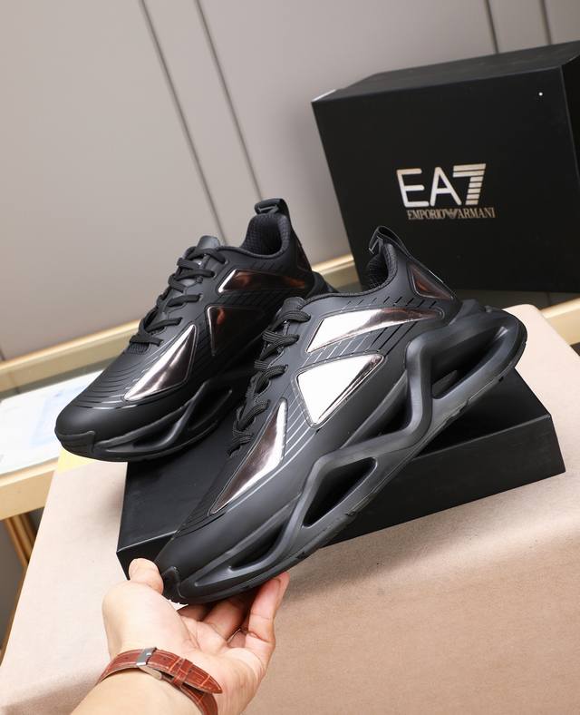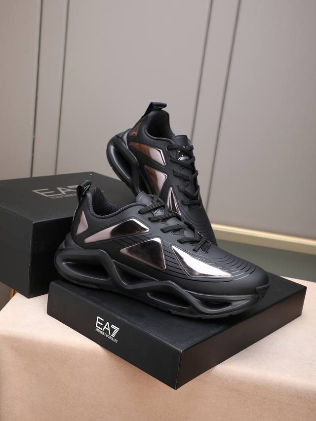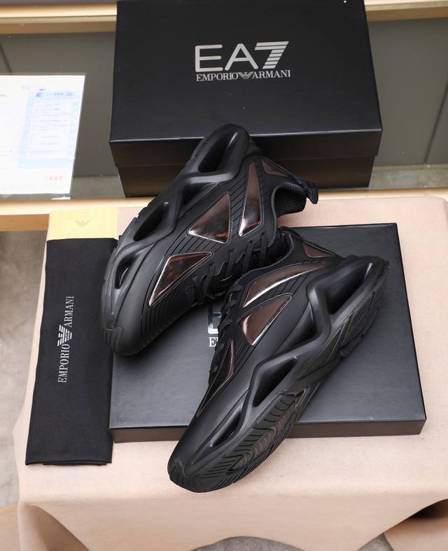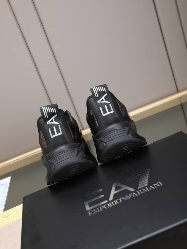 Armani's new luxury trendy sneakers, featuring a dynamic appearance, minimalist design, and imported epoxy resin construction for breathability and comfort. The shoe includes a brand logo on the tongue, a sweat-wicking mesh lining, and a technologically advanced contrasting sole. A trendy outdoor and urban sports style! Sizes: 38-44, 45 (custom sizes available).