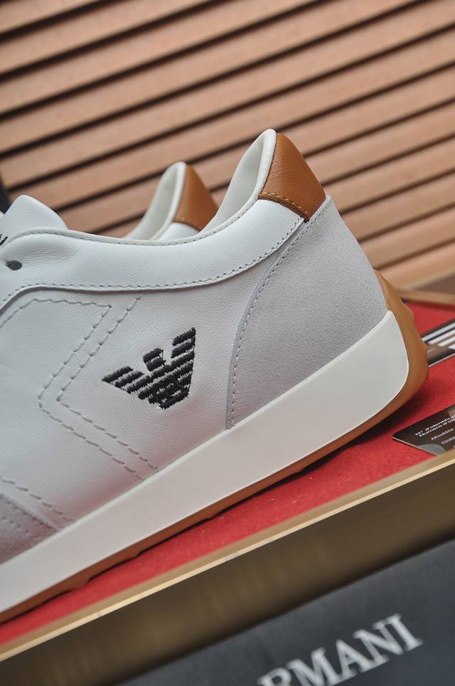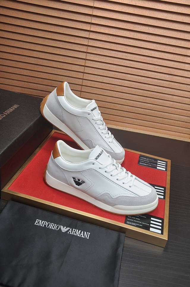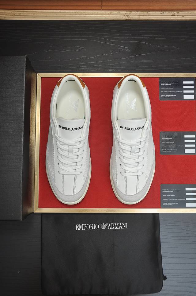 Factory price. Armani's latest casual shoes, featuring a cowhide lining, are a hot seller. This is the same original model as the official website. Made with genuine cowhide, the lining is 1:1, and the sole features a genuine foam. 1:1 molded accessories, premium quality. If you're still struggling with matching shoes, these are the perfect pair for you! Size 38-44