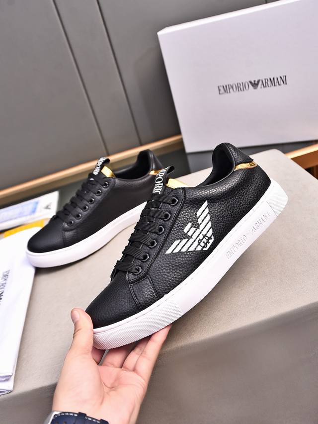 Pp Emporio Armani, latest arrival, a super stylish casual shoe! Made with premium top-grain calfskin, washed lambskin lining, exquisite craftsmanship, and a logo-decorated tongue. Looks incredibly cool on your feet. Sizes: 38-44, 45 available. Custom orders accepted. Two colors available!