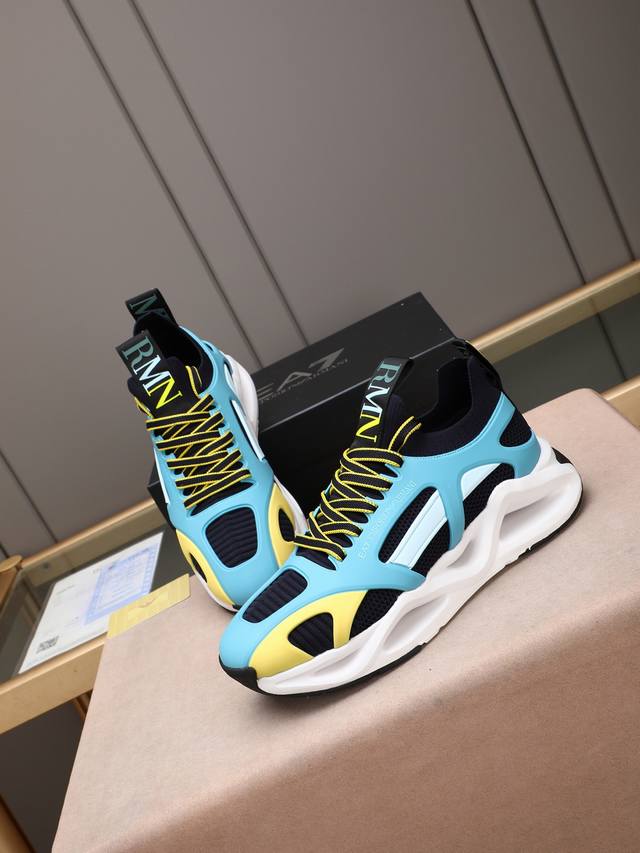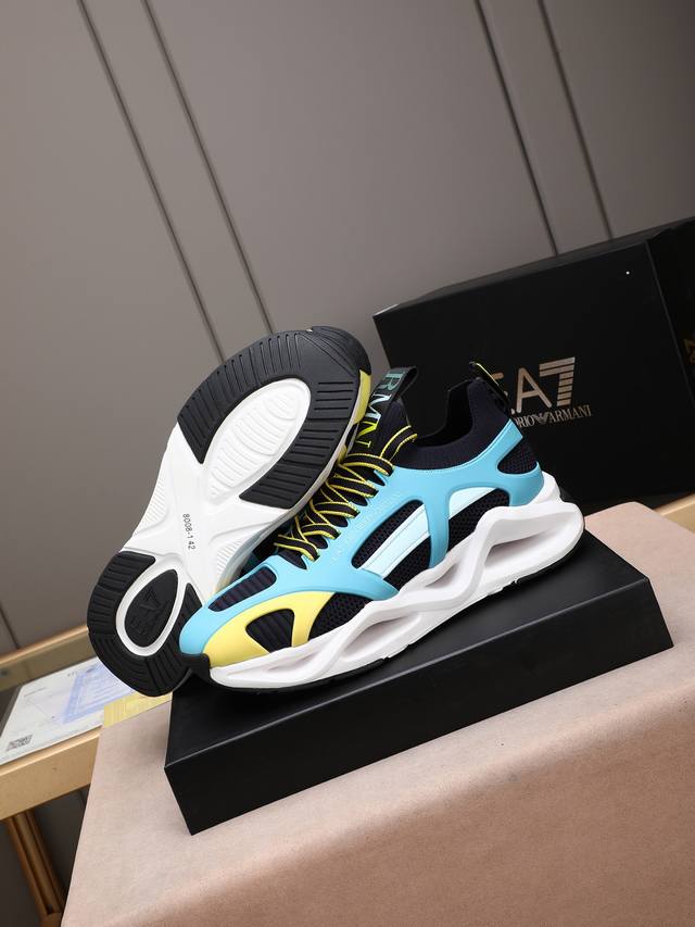 Armani's new luxury sneakers feature a dynamic design and minimalist styling. Made from imported, high-stretch flywoven fabric with drop-in glue for breathability and comfort, they feature a brand logo on the tongue and a sweat-wicking mesh lining for a comfortable feel. These shoes feature a high-tech, contrasting sole for a stylish, outdoor, urban look! Available in 10 colors! Sizes: 38-44, 45, custom-made.