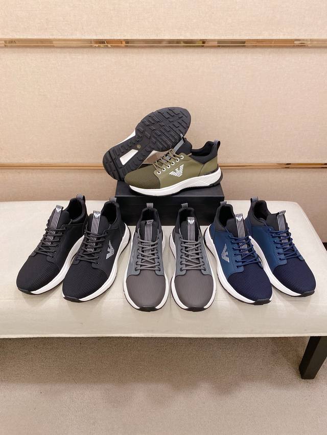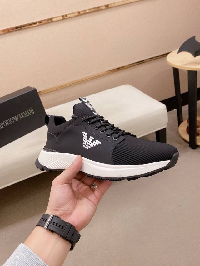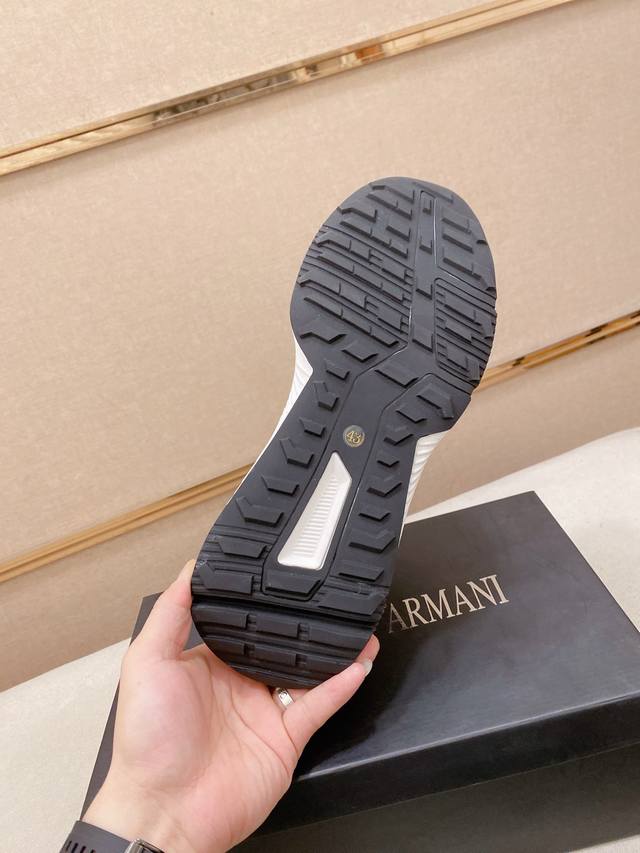 Factory direct price for men's sports shoes, original Armani Exchange latest spring/summer casual men's shoes, welcome 1:1 comparison, best-selling Hong Kong boutique casual shoes, boutique quality, supports inspection, excellent workmanship, upper made of Italian imported cowhide, breathable mesh lining, sheepskin insole, original fashionable sports outsole, casual and stylish, high-end quality, sizes: 38-44, custom sizes 45 available, no returns or exchanges.