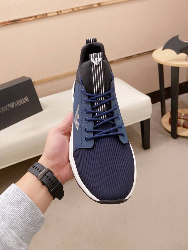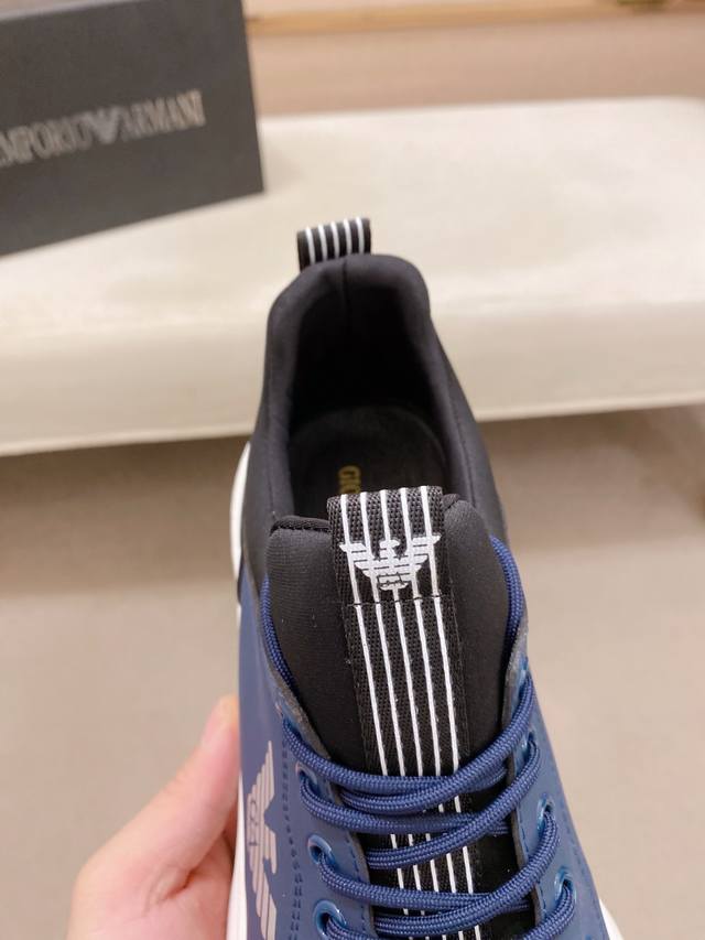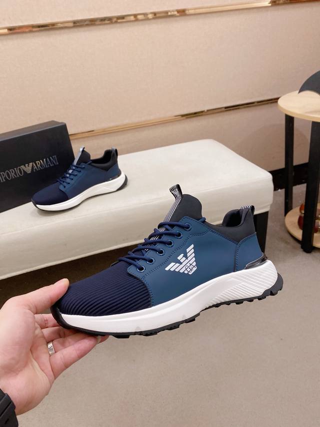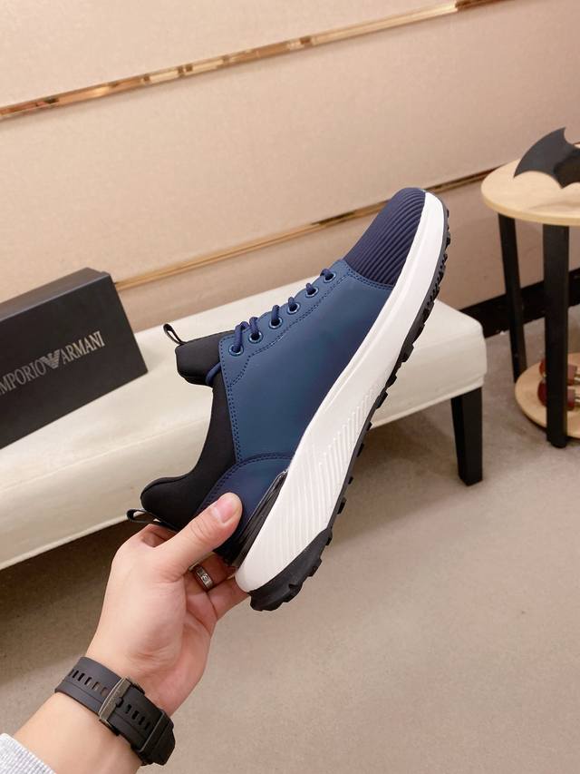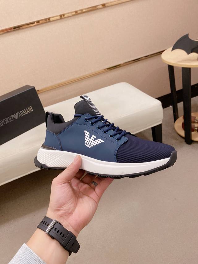 Factory direct price for men's sports shoes, original Armani Exchange latest spring/summer casual men's shoes, welcome 1:1 comparison, best-selling Hong Kong boutique casual shoes, boutique quality, supports inspection, excellent workmanship, upper made of Italian imported cowhide, breathable mesh lining, sheepskin insole, original fashionable sports outsole, casual and stylish, high-end quality, sizes: 38-44, custom sizes 45 available, no returns or exchanges.