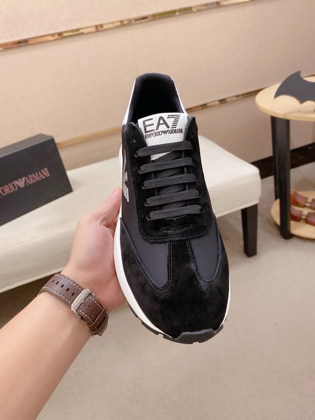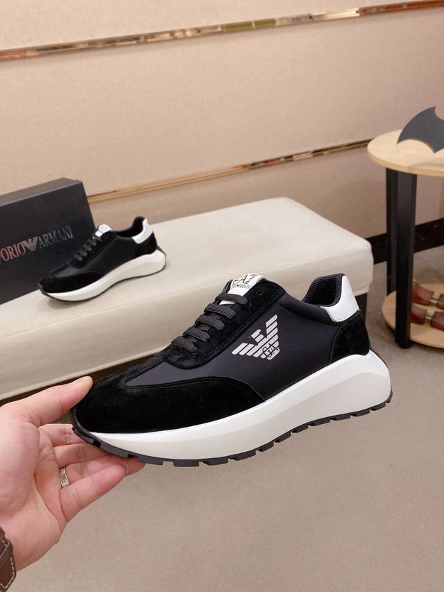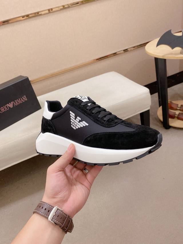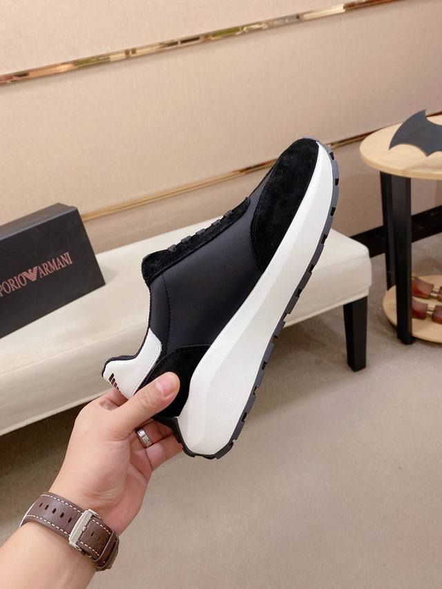 Factory direct price for men's sports shoes, original Armani Exchange latest spring/summer casual men's shoes, welcome 1:1 comparison, best-selling Hong Kong boutique casual shoes, boutique quality, supports inspection, excellent workmanship, upper made of Italian imported cowhide, breathable mesh lining, sheepskin insole, original fashionable sports outsole, casual and stylish, high-end quality, sizes: 38-44, custom sizes 45 available, no returns or exchanges.