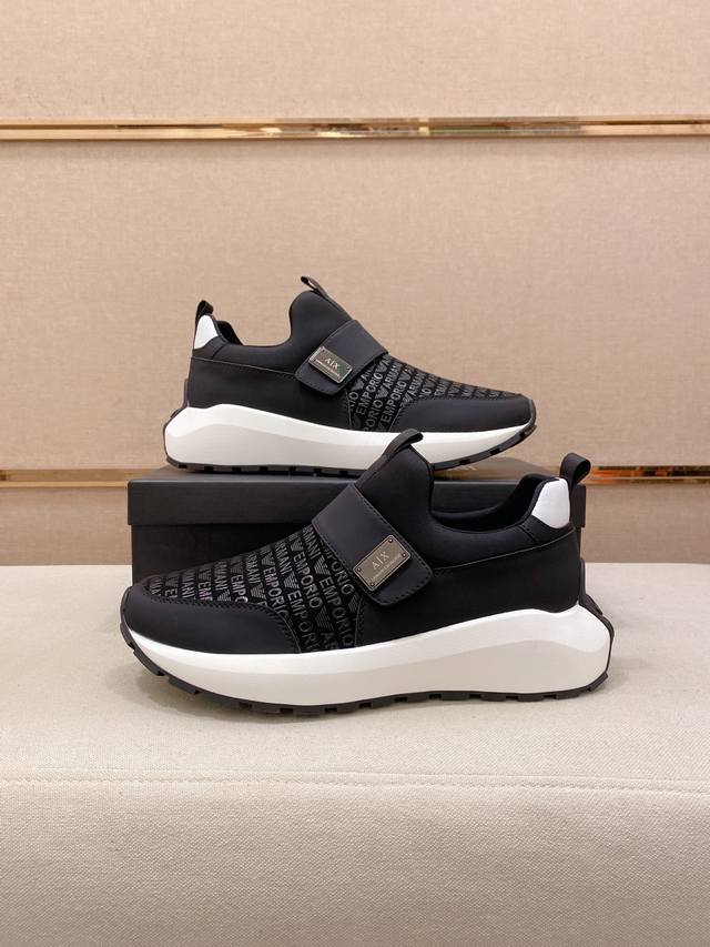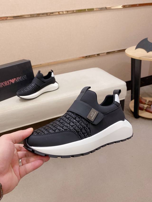 Factory direct price for men's sports shoes, original Armani Exchange latest spring/summer casual men's shoes. Welcome 1:1 comparison. Hot-selling Hong Kong boutique casual shoes, boutique quality, supports inspection, excellent workmanship, upper made of Italian imported cowhide, breathable mesh lining, sheepskin insole, original fashionable sports outsole, casual and stylish, high-end quality. Sizes: 38-44, custom sizes 45 available, no returns or exchanges.