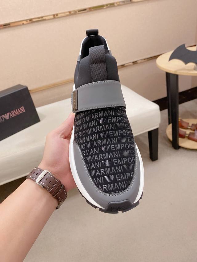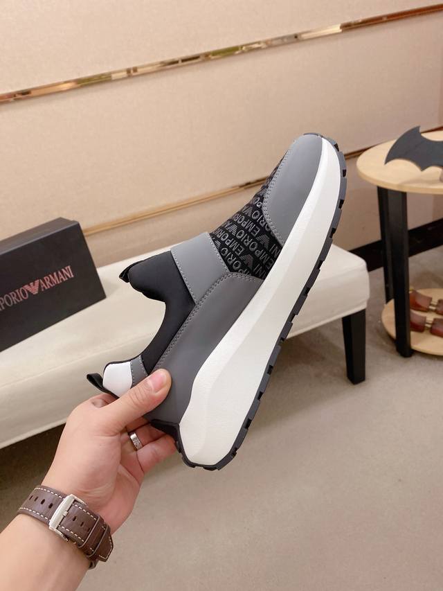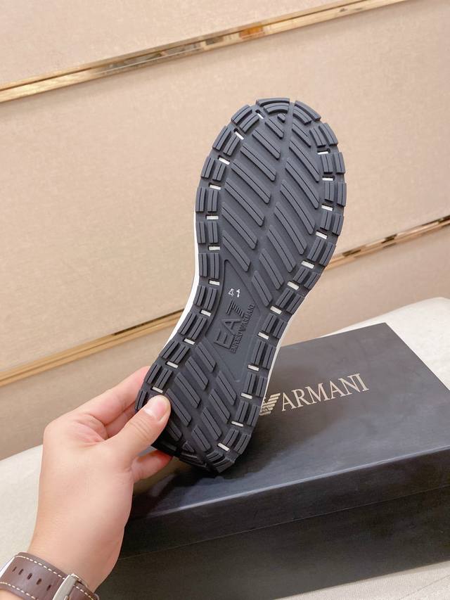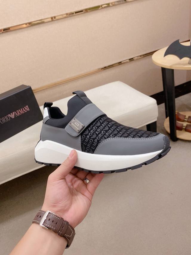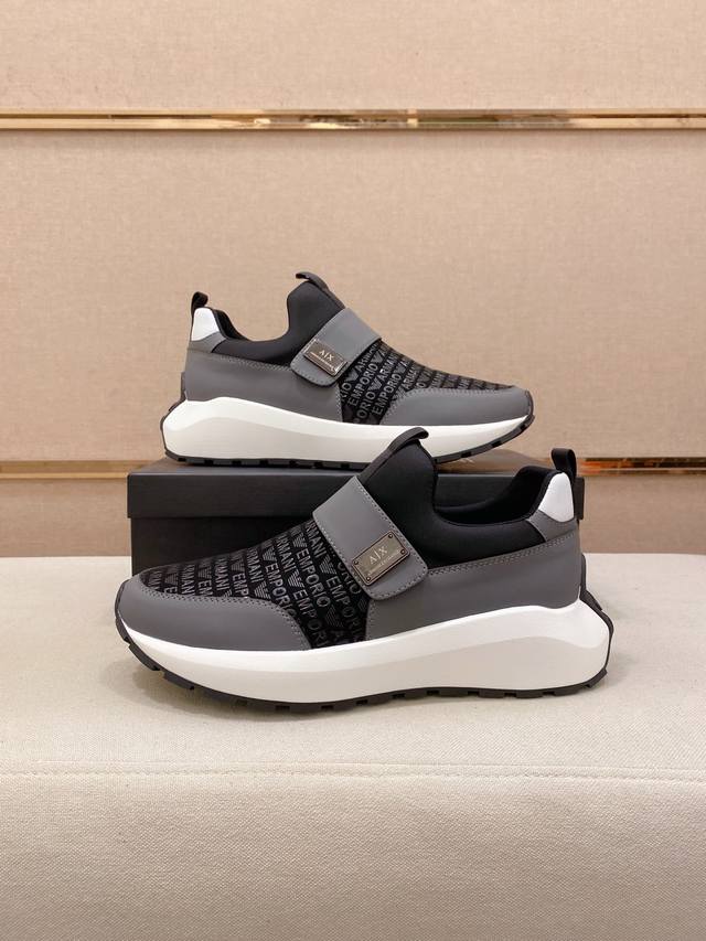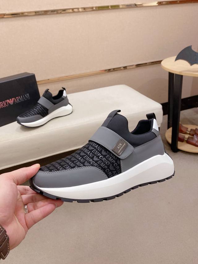 Factory direct price for men's sports shoes, original Armani Exchange latest spring/summer casual men's shoes, welcome 1:1 comparison, best-selling Hong Kong boutique casual shoes, boutique quality, supports inspection, excellent workmanship, upper made of Italian imported cowhide, breathable mesh lining, sheepskin insole, original fashionable sports outsole, casual and stylish, high-end quality, sizes: 38-44, custom sizes 45 available, no returns or exchanges.