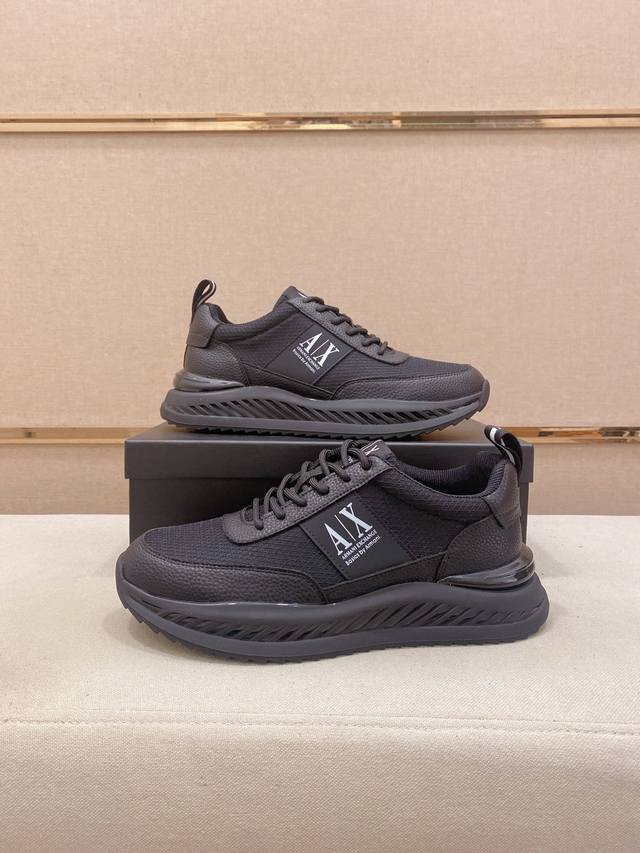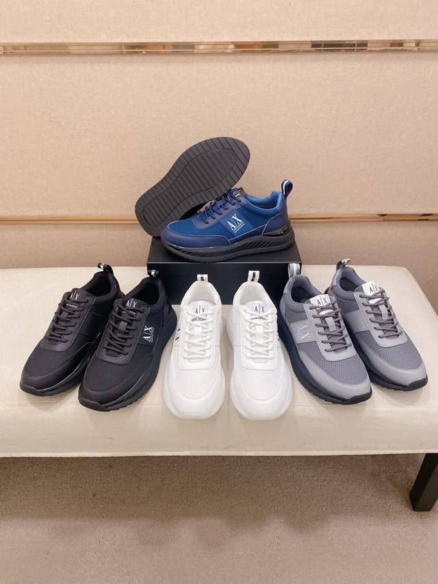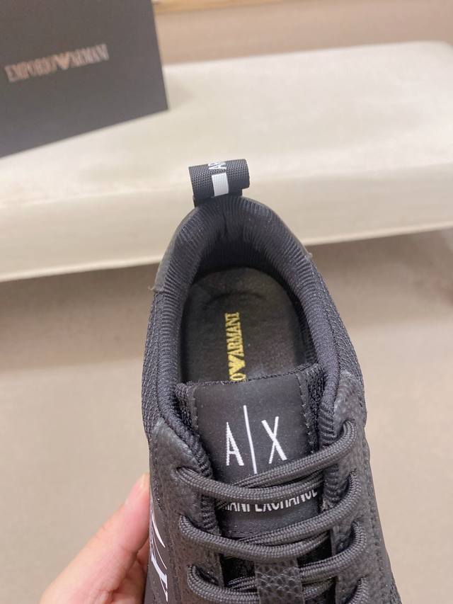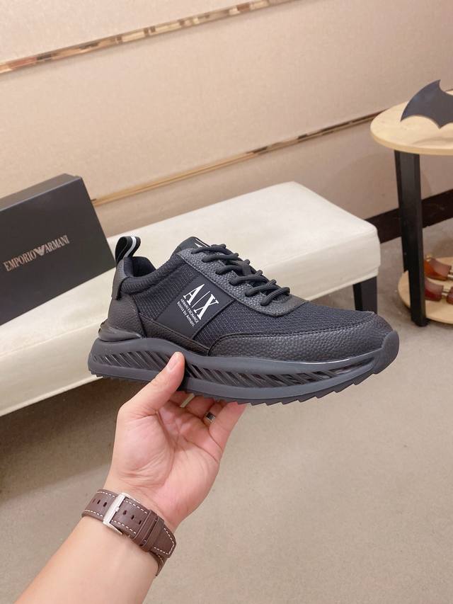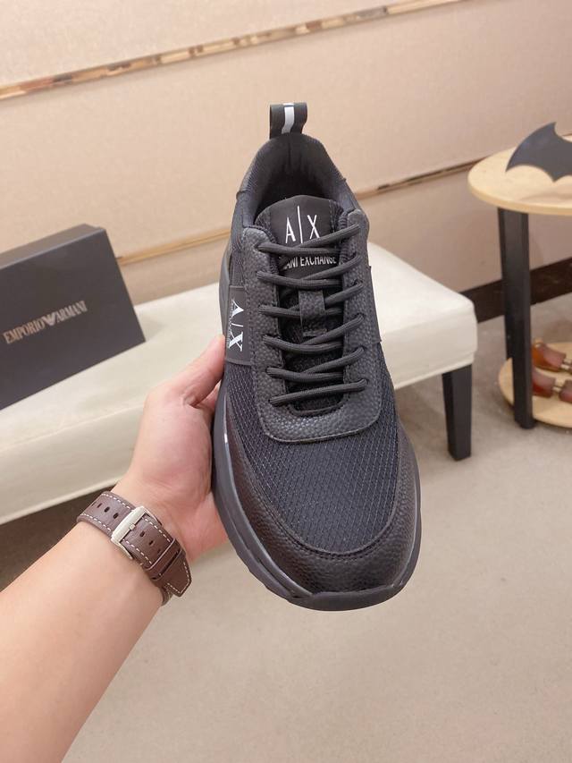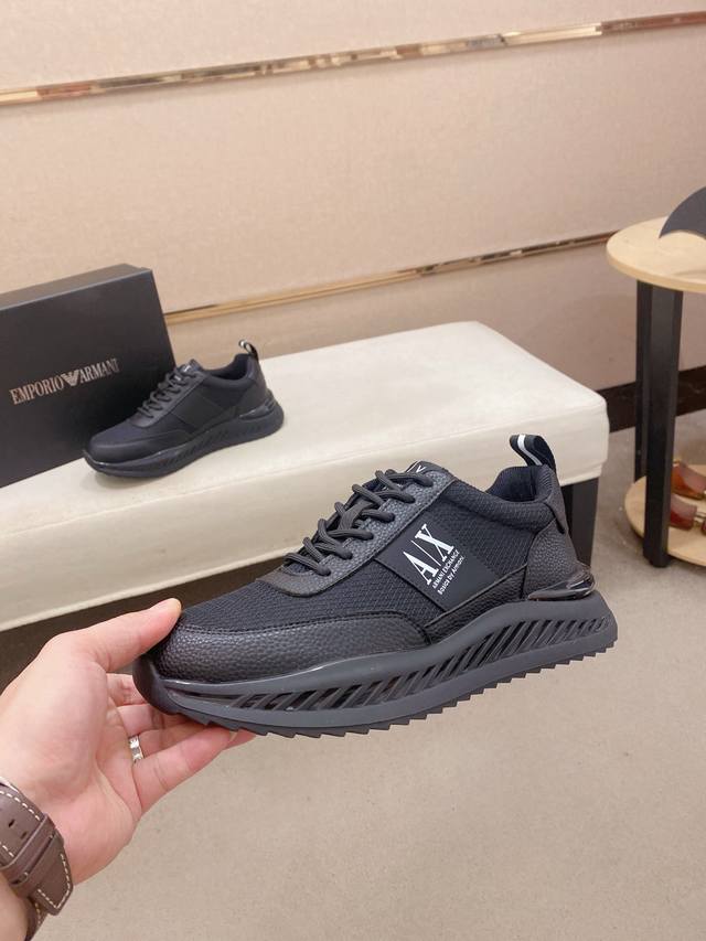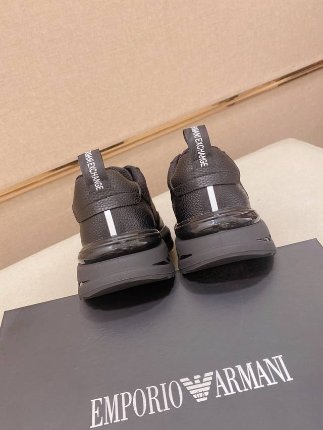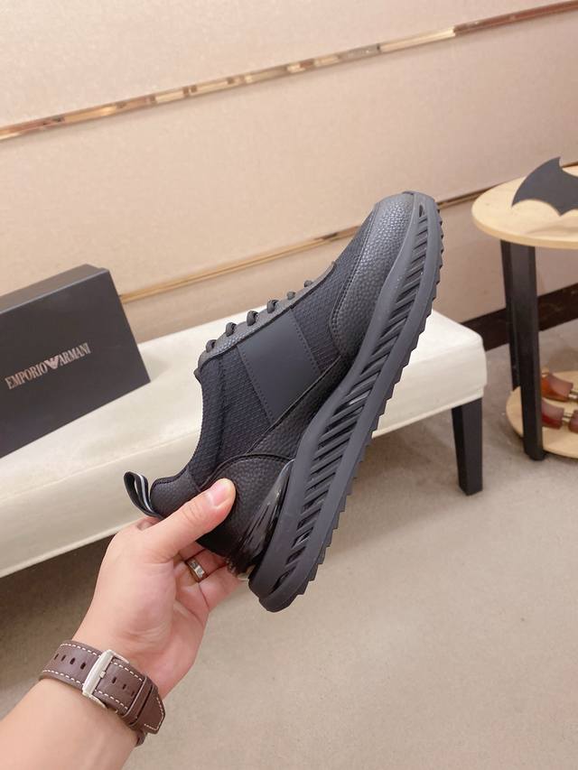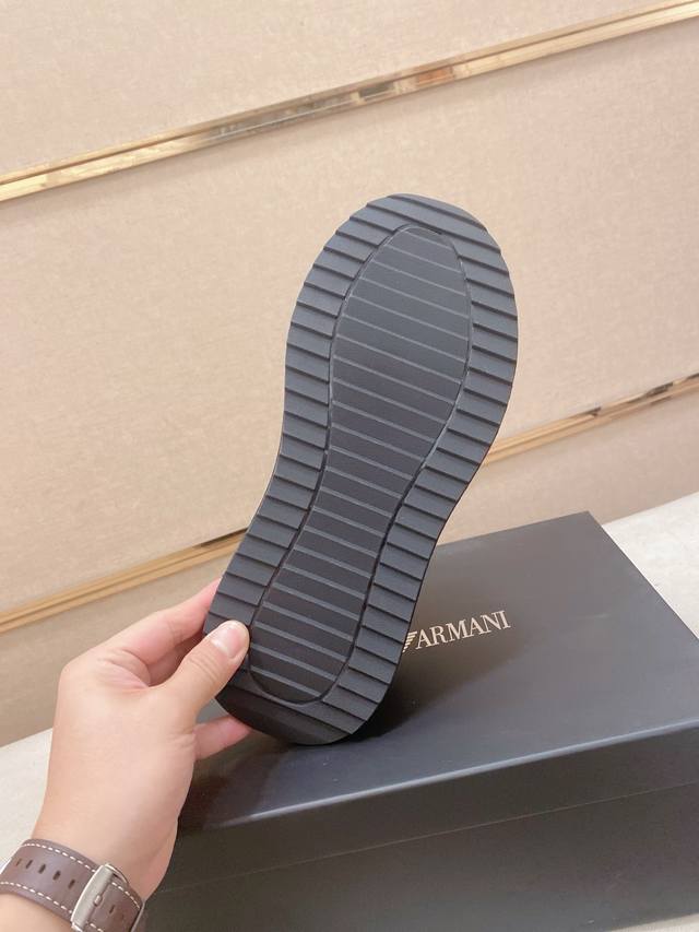 Factory direct price for men's sports shoes, original Armani model, new arrivals, same style as in boutiques. Italian imported top-grain cowhide upper. Imported mesh lining, genuine leather insole, 1:1 replica. Original factory sole, exclusive molded sole for super comfort. Factory direct order, high quality, can be freely exchanged for boutique items. Welcome to compare. Sizes: 38-44. Custom sizes 45 and 46 are available, no returns or exchanges.