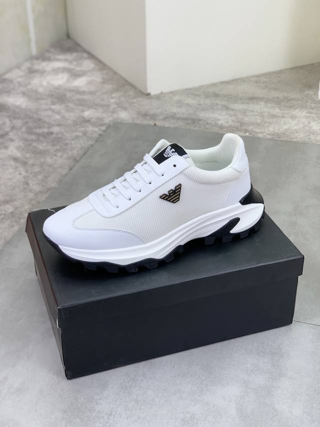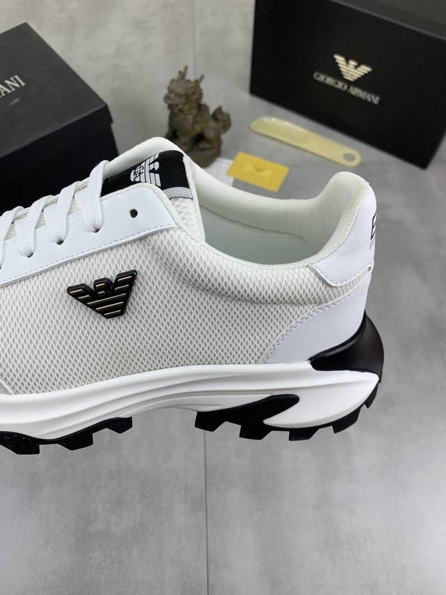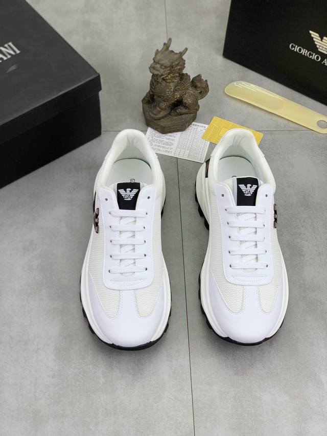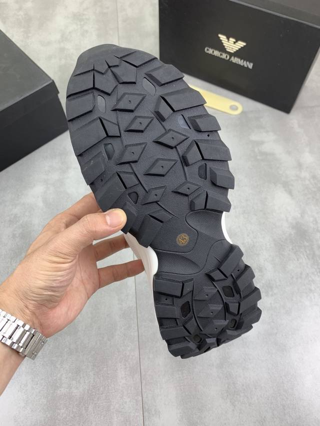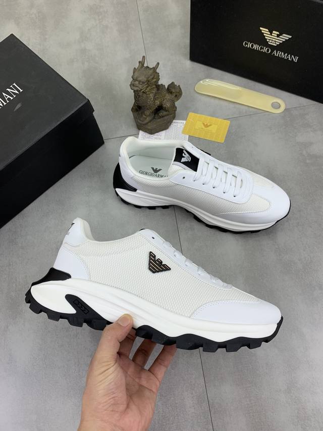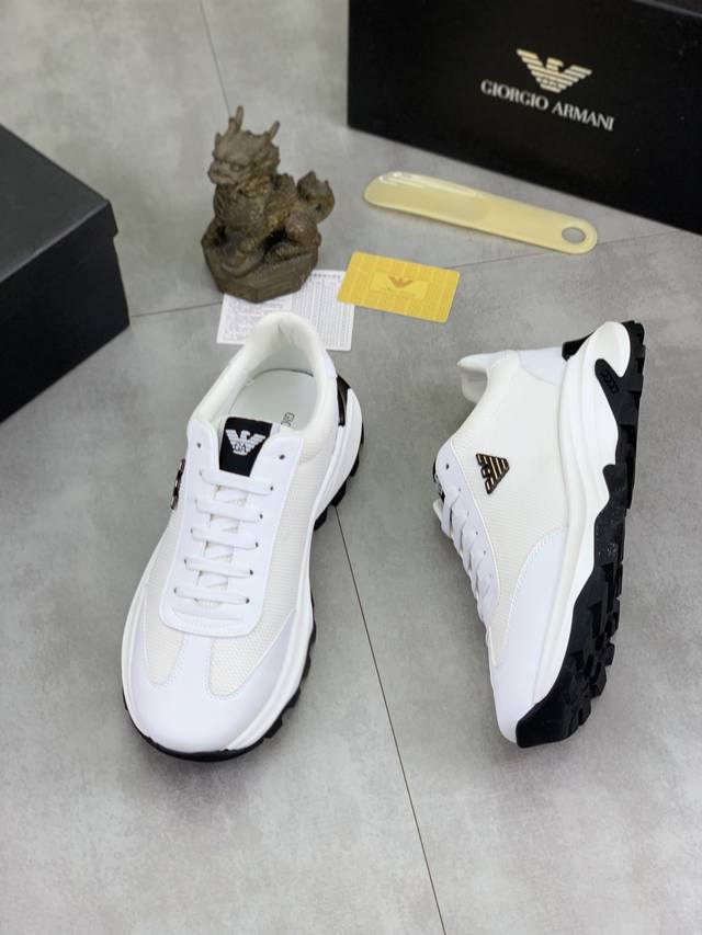 Factory direct price for men's sports shoes, original Armani new style, early release. Materials and workmanship surpass all other versions on the market. Highest quality imported original cowhide leather, sheepskin lining, custom-molded soft TPU rubber outsole for superior comfort. Real product photos, imported special materials highlight the brand's unique charm. Available in 3 colors and sizes: 38-44-45. Custom orders accepted.
