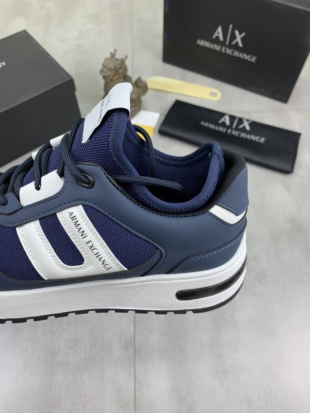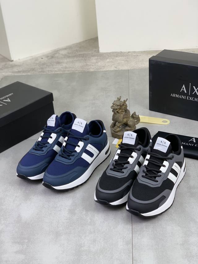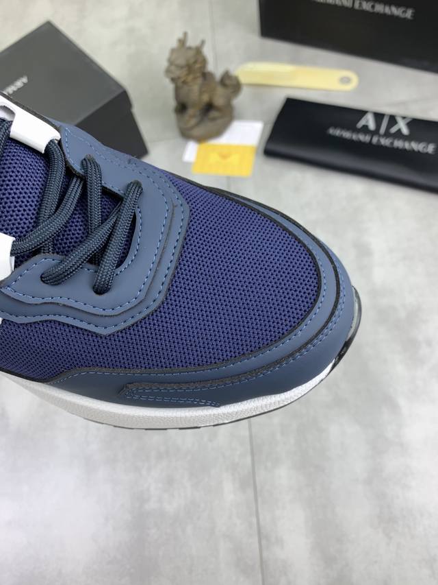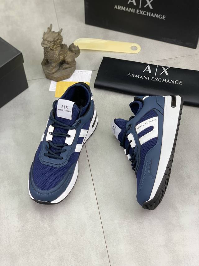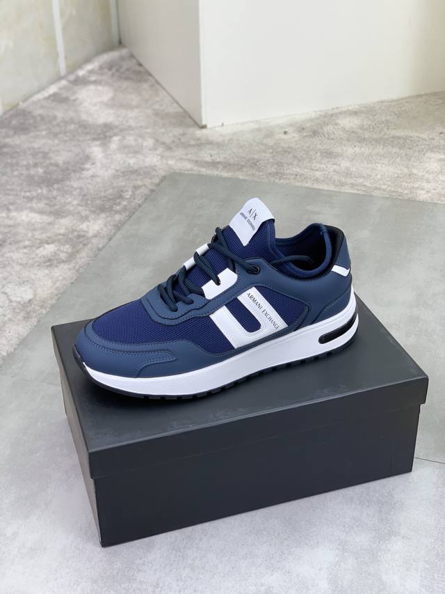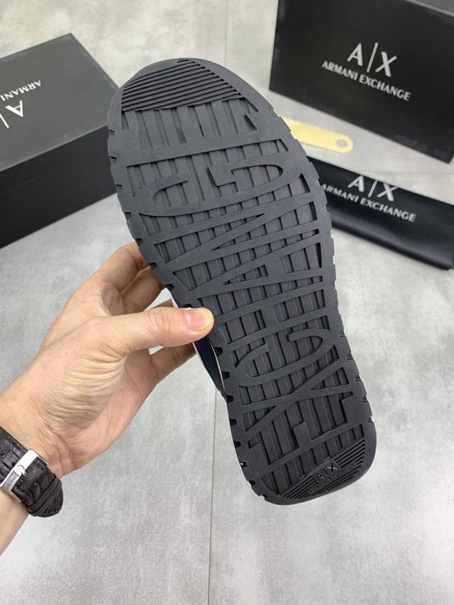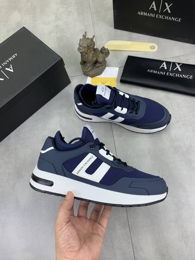 Factory direct price for men's sports shoes, original Giorgio Armani new casual sports shoes arrived, Kint-And-Leather Snakers debut! This shoe features an original design combined with innovative materials, including imported cowhide embossed leather for a three-dimensional look! It boasts a modern, high-tech style, making it the ideal footwear for urban life, exuding a dynamic vibe and youthful energy! The breathable washed sheepskin lining, non-slip, wear-resistant, high-elastic foam, and ultra-lightweight outsole ensure durability and support, providing exceptional comfort. It offers outstanding friction, shock absorption, and moderate support, providing exceptional comfort and superior performance