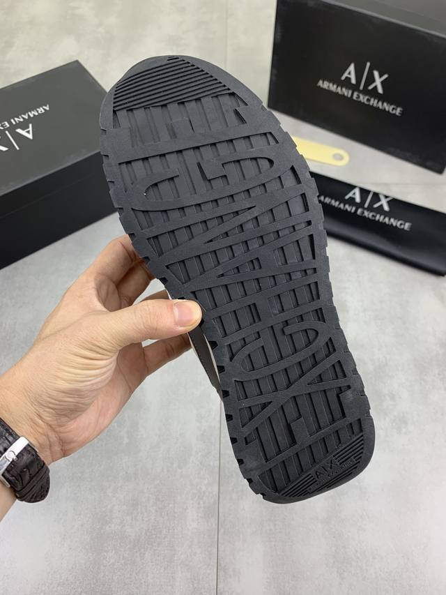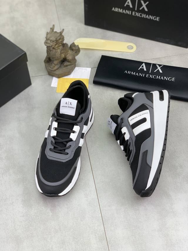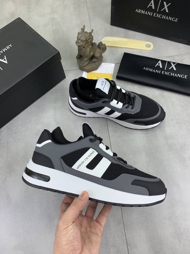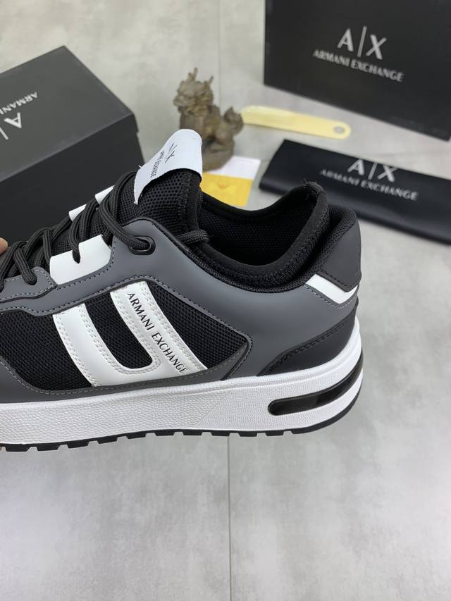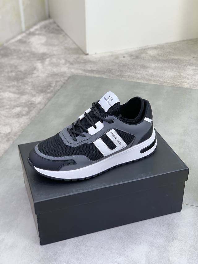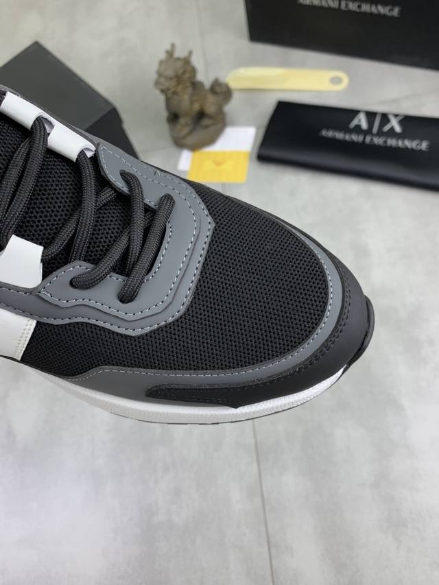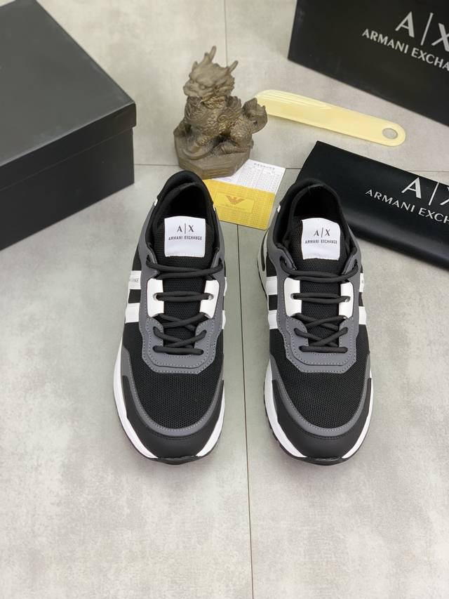 Factory direct price for men's sports shoes, original Giorgio Armani new casual sports shoes arrived, Kint-And-Leather Snakers debut! This shoe features an original design combined with innovative materials, including imported cowhide embossed leather for a three-dimensional look! It boasts a modern, high-tech style, making it the ideal footwear for urban life, exuding a dynamic vibe and youthful energy! The breathable washed sheepskin lining, non-slip, wear-resistant, high-elastic foam, and ultra-lightweight outsole ensure durability and support, providing exceptional comfort. It offers outstanding friction, shock absorption, and moderate support, providing exceptional comfort and superior performance