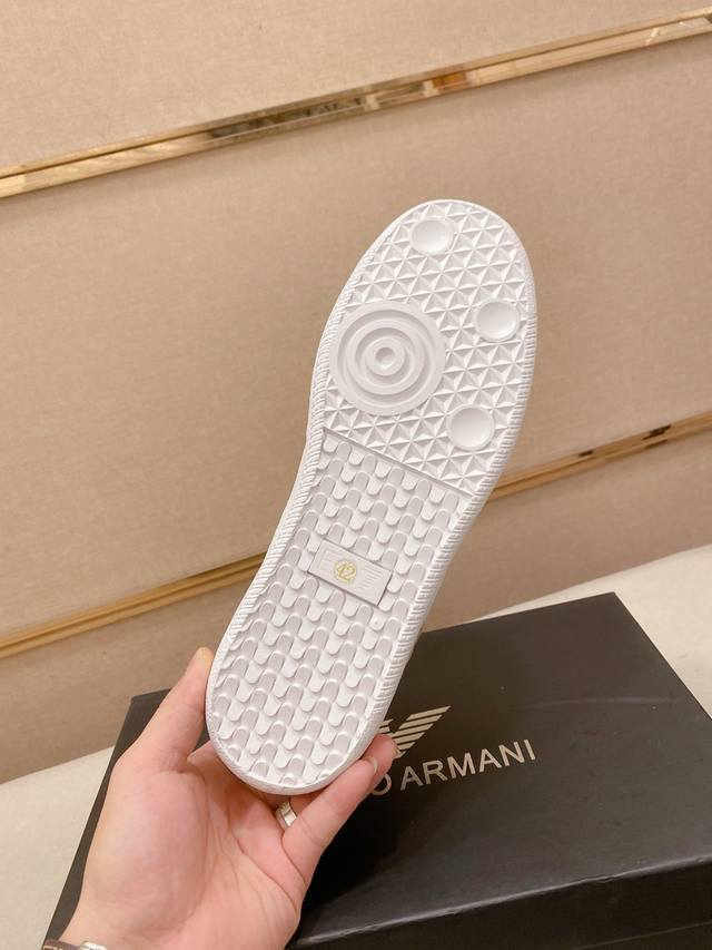 Factory direct price for new Armani shoes, available simultaneously with boutiques. Italian imported top-grain cowhide upper, breathable mesh lining, genuine leather insole. A perfect 1:1 replica. Outsole: Original factory-supplied sole, exclusive molded sole for super comfort. Original factory order, high quality, can be freely passed off as an official boutique item. Welcome to compare. Sizes: 38-44, size 45 available by custom order.