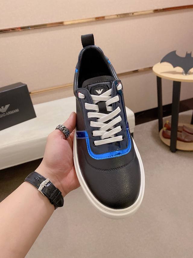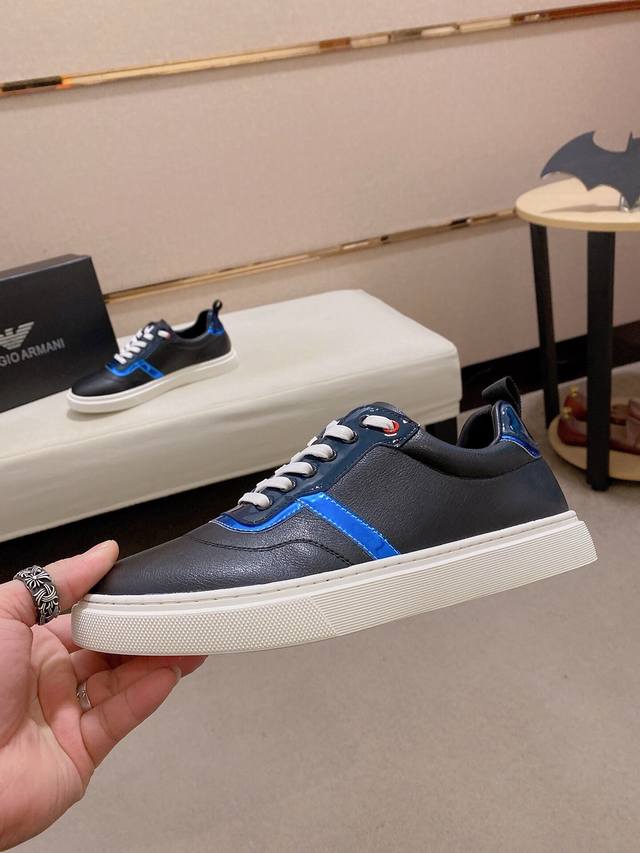 Factory direct price men's sports shoes, original Armani new popular style, 1:1 replica. The calm, sophisticated, and elegant taste is indescribable, embarking on a fashionable footwear journey and confidently handling various occasions! The brand's aura speaks for itself! Comfortable and stylish on the feet! Materials: Top-grain cowhide, breathable sheepskin lining, high-temperature resistant and wear-resistant rubber outsole, a fashion essential! Sizes: 38-44, 45 custom-made, large stock available. 3 colors to choose from. DDD