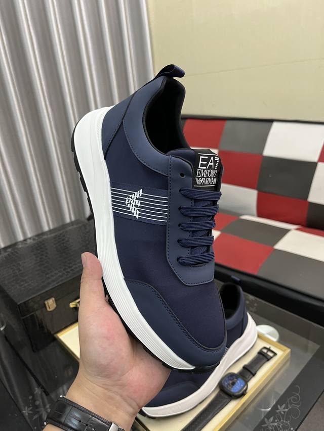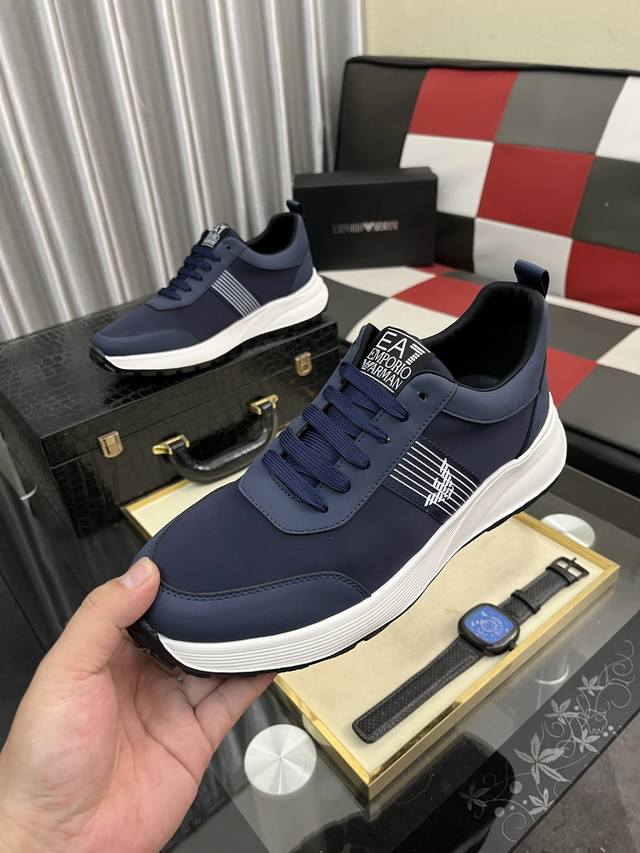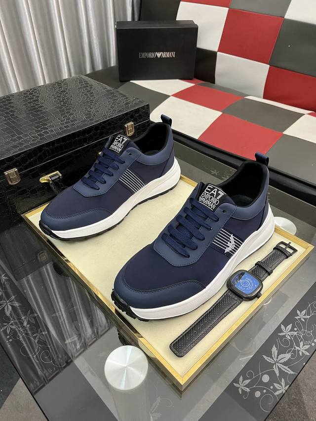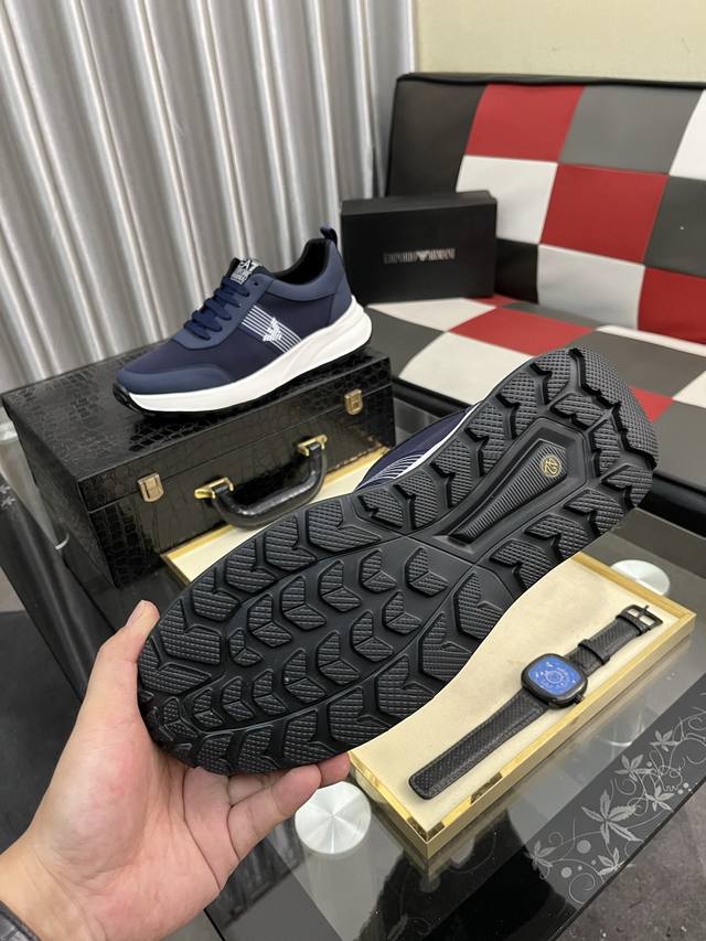 Factory Price: Armani's latest hot-selling casual shoes, top-tier luxury brand~ Top-quality through personal shopper. The upper is made of imported breathable fabric, breathable sheepskin insole, and exquisite workmanship. Original design, stylish and soft rubber outsole, lightweight and comfortable on the foot. Sizes: 38-443 available.