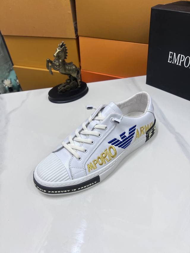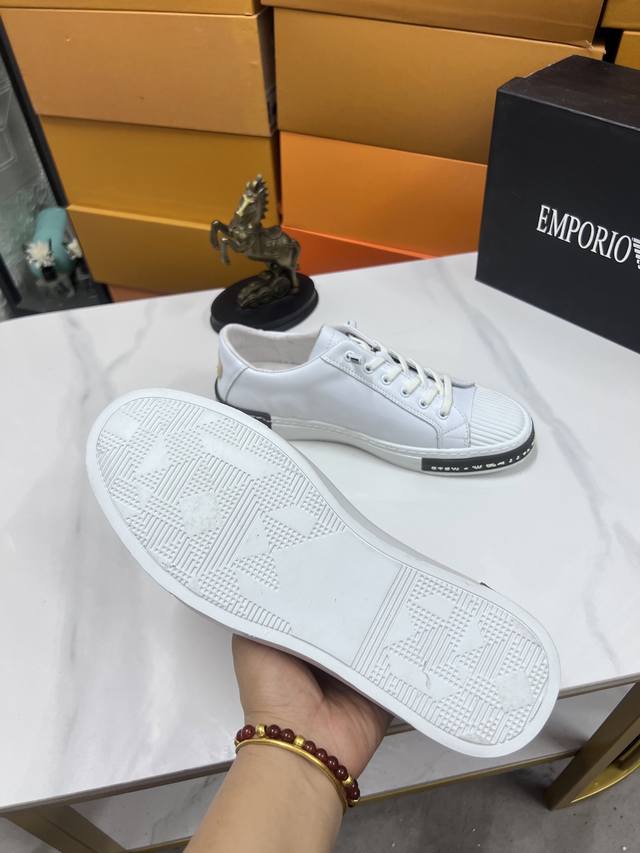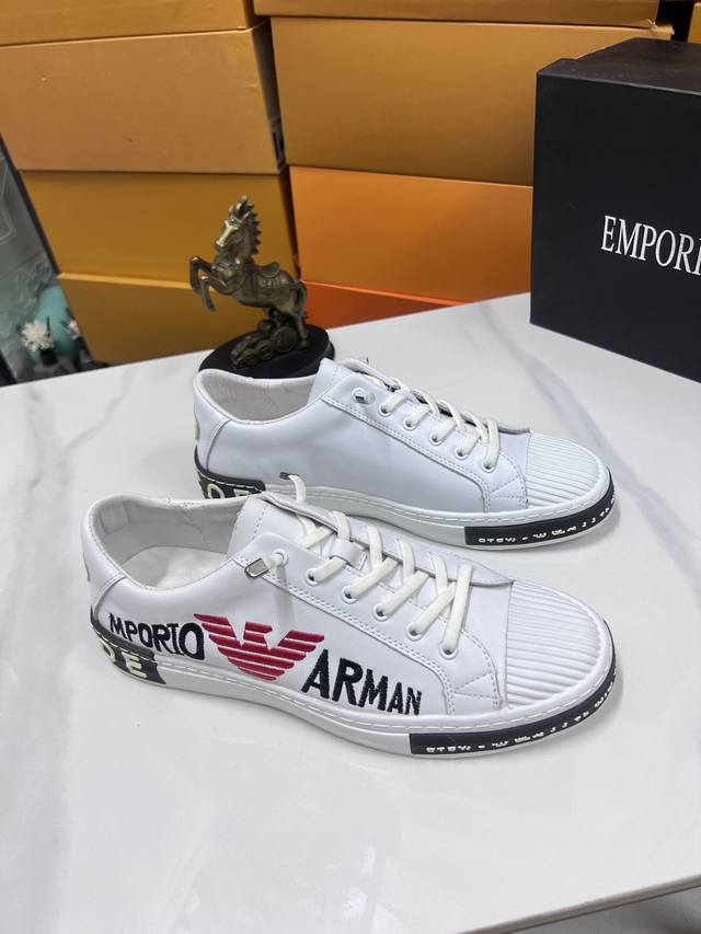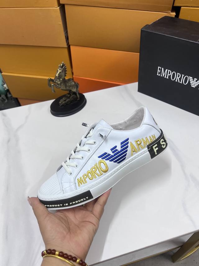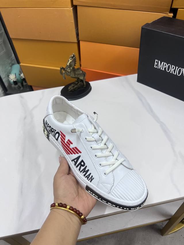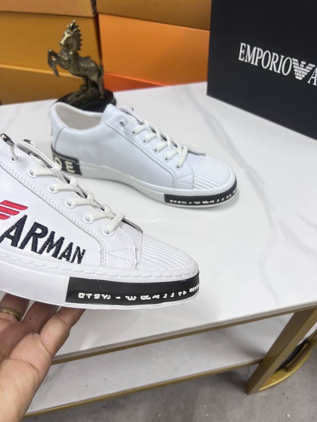 Factory price pp: Armani casual sneakers official website synchronized new imported waxed cowhide leather lining original midsole private custom glue foam outsole outsole combination 38-44X