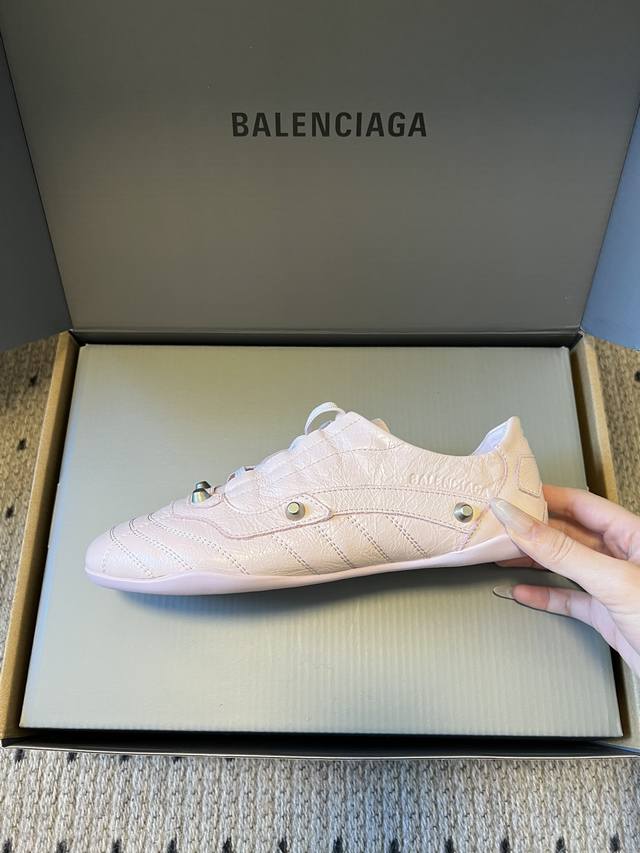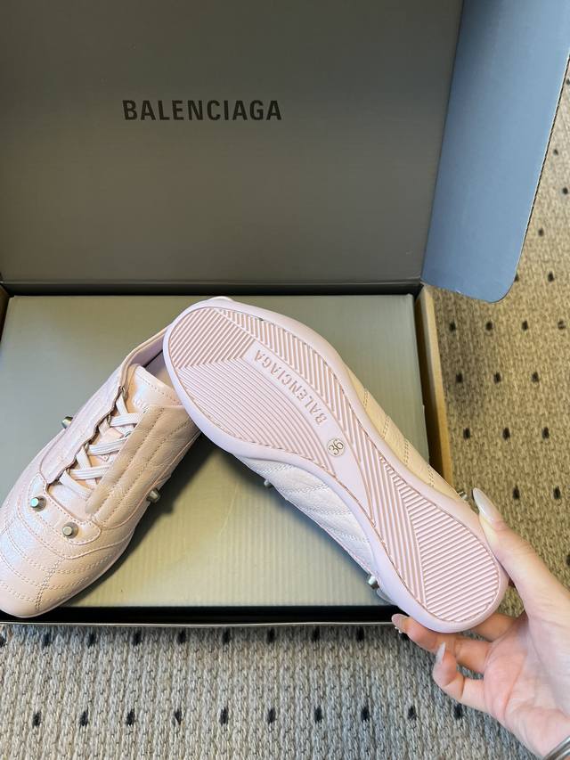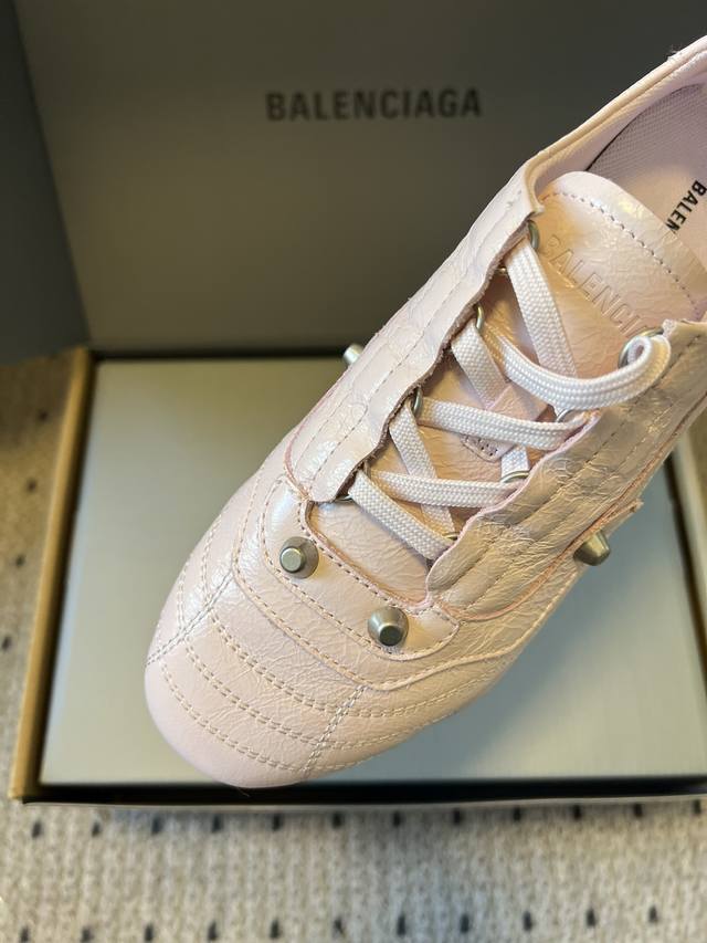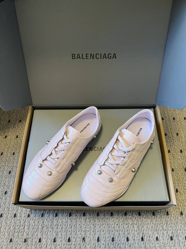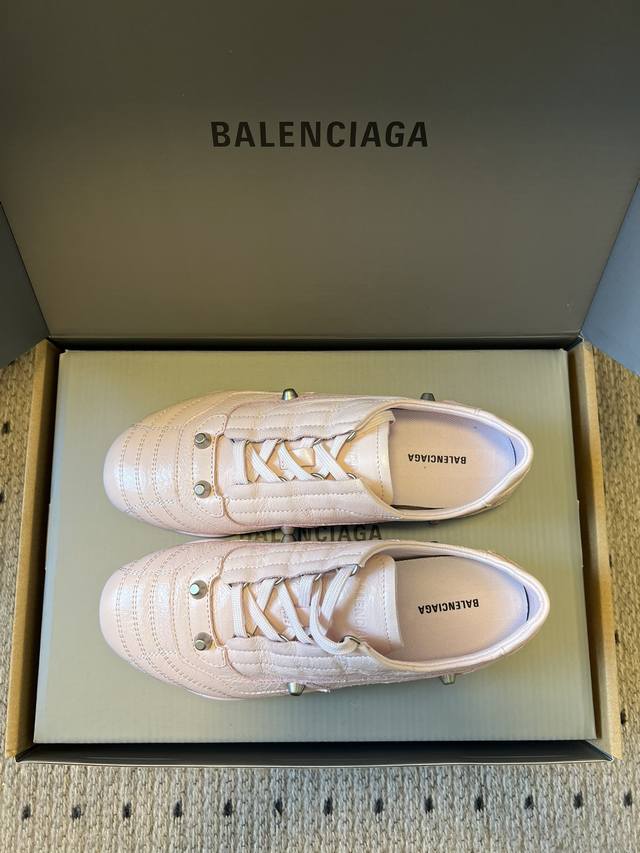 Balenciag* 25Ss Sporty Retro German Football Training Shoes Casual Shoes DDD Based on retro football boots, these shoes blend Balenciaga's signature "fashionable sportswear" style. The pointed toe and low-top silhouette exude a retro vibe, while bright-colored special materials soften the sporty feel, making them more like a stylish accessory. The upper is made of embossed leather, with a delicate sheen and high-end texture; some colors feature a metallic coating to increase eye-catching appeal. DDD The shoe body features rivet decorations and stitching textures, retaining classic elements of football boots while enhancing the luxurious feel through exquisite craftsmanship; the laces are the same color as the shoe body, creating a unified style. Available in a variety of colors, they can be paired with casual pants or jeans for a street style look, or with skirts for a "sweet and cool contrast," making them a very popular type of "fashionable football boot" in recent years. DDD Upper: Cowhide DDD Lining: Sheepskin DDD Outsole: Original molded outsole DDD Height increase: 2.5cm DDD Size: 35-40, size 40 is custom-made and non-refundable DDD