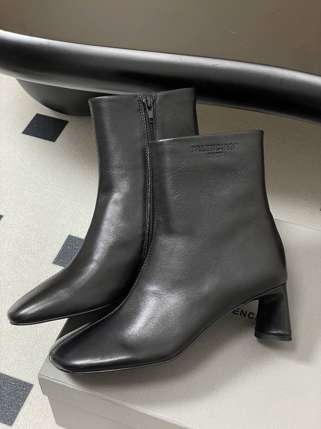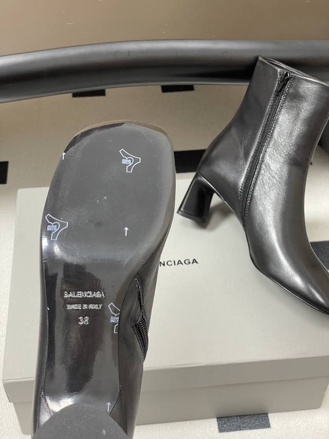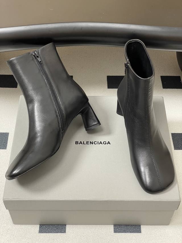 25S Fall/Winter new Balenciaga runway-style square-toed ankle boots, a blockbuster new arrival from Paris Fashion Week. Featured on the Kardashian Kollection by major international bloggers, and highly praised by top international celebrities like Nickiminaj, these boots have become a hit both at home and abroad. A viral Instagram item, the brand's unique flat-toe design is considered the year's most stunning style, suitable for all leg shapes, and a style that's being highly recommended by major influencers and celebrities. Upper: Mixed sheepskin. Lining: Sheepskin. Sole: Genuine Italian leather outsole. Heel height: 6.5cm. Sizes: 35-39, 40, 41. Made to order, no returns or exchanges.