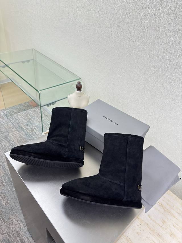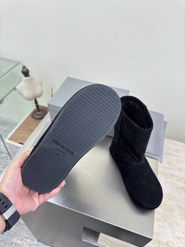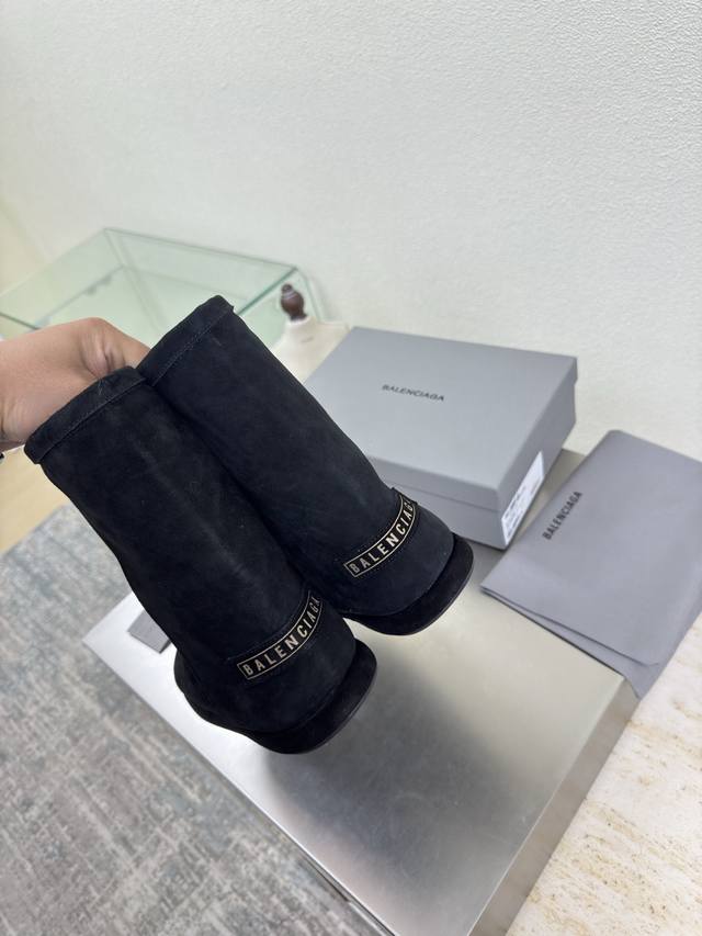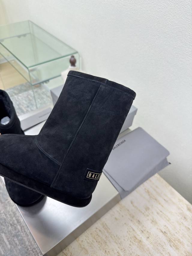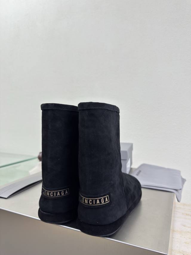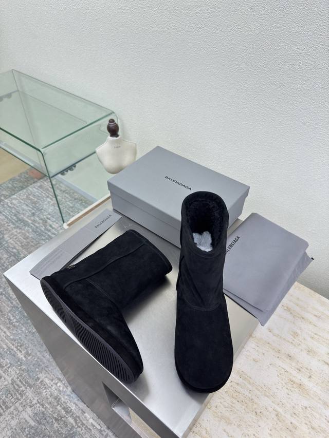 Balenciag Snow Boots Thick-Soled Wool Lined DDD Mid-Calf Snow Boots Black High-Gloss Cow Suede DDD Sheep Wool Lining DDD Wool Lining Design Balencia Classic DDD Top-Tier Version All Materials Matched DDD Continuing Demna's Rebellious Attitude Against Mainstream Glamorous Fashion DDD Translucent Dyeing Process DDD Family Elements Heel with Large Brand Logo DDD Special Heel Design with Family Logo DDD Original Large Logo Matched TPU Molded Outsole DDD Sizes 34 35 36 37 38 39 40 41 DDD 34 40 41 Custom Made, No Returns or Exchanges DDD Comes with Original Packaging DDD