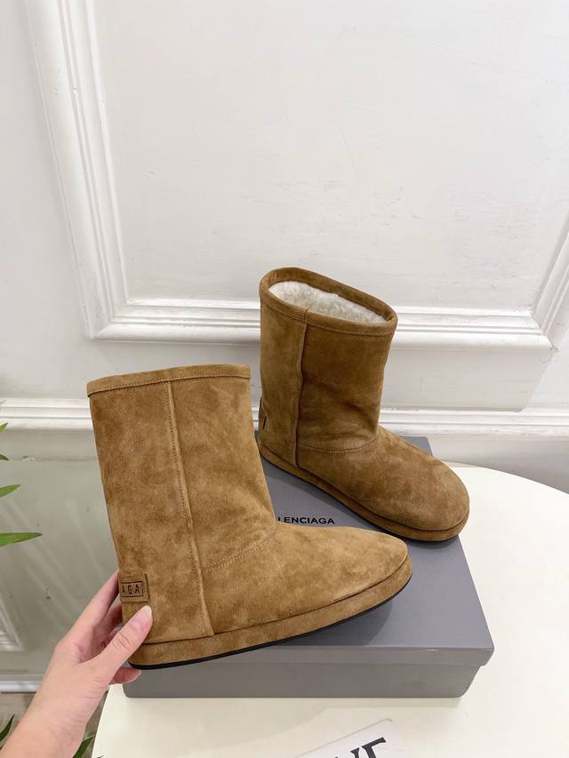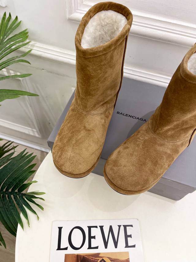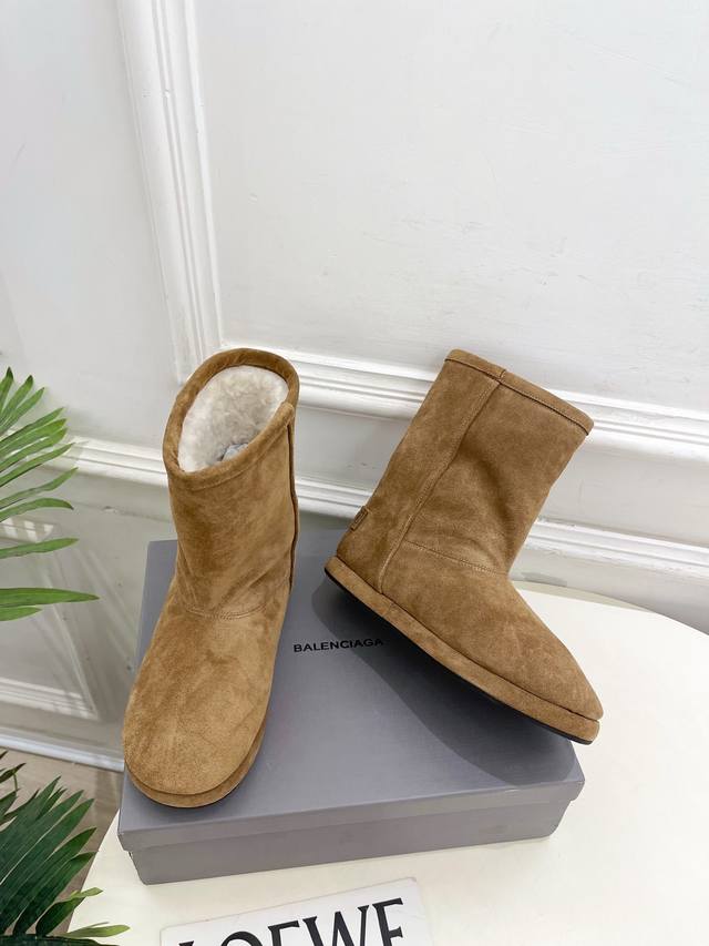 Balenciaga 2025 Fall/Winter New Arrival - Balenciaga Straight-Leg Wool Slip-On Snow Boots DDD These super popular boots from celebrities, influencers, and fashionistas are all featured on runway shows. They're relaxed, elegant, sophisticated, and cute. The calfskin leather and classic double logo give them a retro feel, making them the most versatile shoe this year