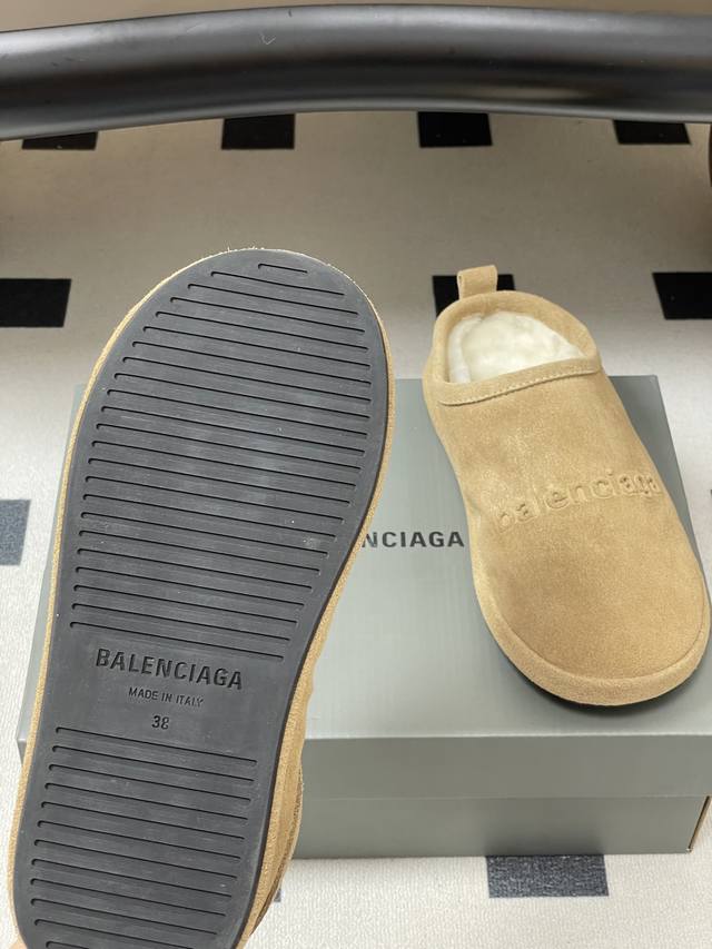 Balenciaga 25Fw Autumn/Winter New Alaska Soft Thin-Soled Wool Mule Slip-On Slip-On Birkenstocks DDD The upper is made of suede-like material, soft and delicate to the touch; the inside is filled with fleece lining for excellent warmth, suitable for autumn and winter wear. The shoe body is printed with the brand's embossed logo, simple, understated yet recognizable; the shoe shape is a closed-toe mule slip-on style, balancing casualness and style, and the small pull tab design on the heel adds practicality and detail. DDD Pair it with a loose sweatshirt or sweatpants + jogger pants or straight-leg jeans for a relaxed and casual everyday look; wearing these slip-ons is both comfortable and enhances the overall style, suitable for home, shopping, or cafe photo opportunities. DDD Upper: Nubuck leather DDD Insole: Wool DDD Outsole: Open-mold rubber outsole DDD Sizes: 35-39 Sizes 40 and 41 are custom-made and non-refundable DDD