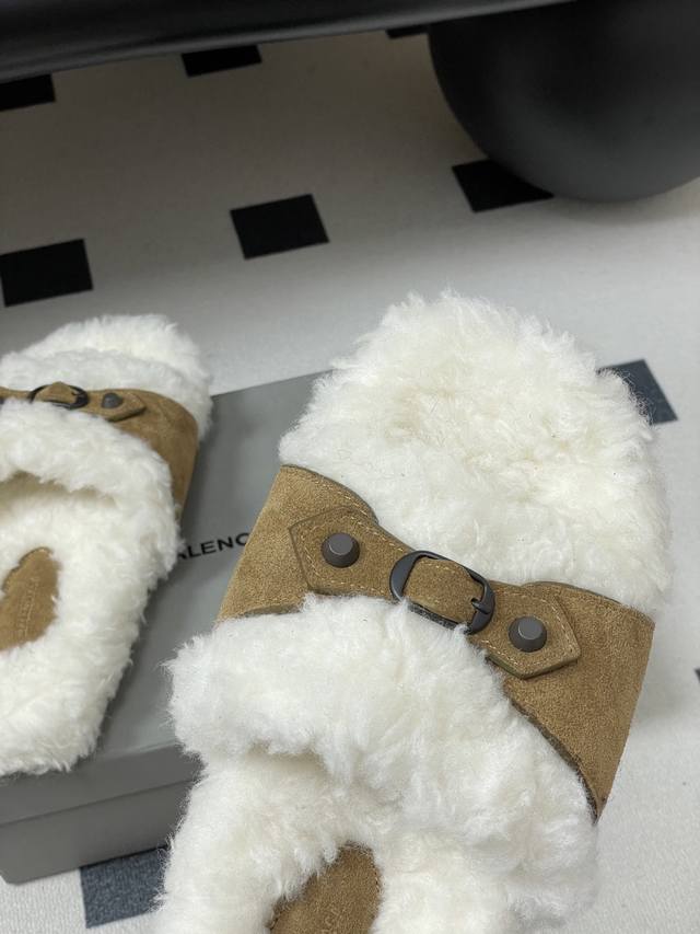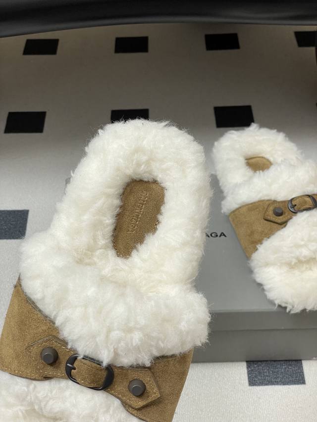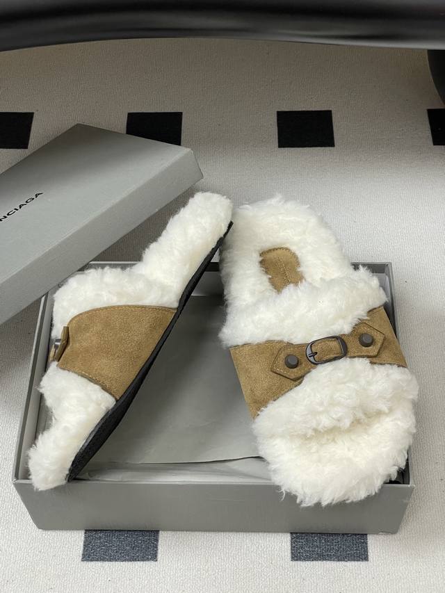 Balenciaga 25Fw Autumn/Winter New Wool Slippers Classic Buckle Studded Wool Slippers DDD These uniquely designed slippers feature straps and other elements that not only provide a secure fit but also allow for adjustable tightness. The brand's signature distressed hardware is present throughout, subtly creating a vintage, worn effect that showcases individuality. The thick, serrated rubber sole ensures comfort while enhancing the overall style and recognizability. Undoubtedly a must-have fashion item this season, it will add a unique charm to fashion lovers' outfits and lead a new wave of trends. DDD Upper: Suede DDD Insole: Wool DDD Outsole: Molded Rubber Outsole DDD Sizes: 35-39 40, 41, 42 Custom-made, no returns or exchanges DDD