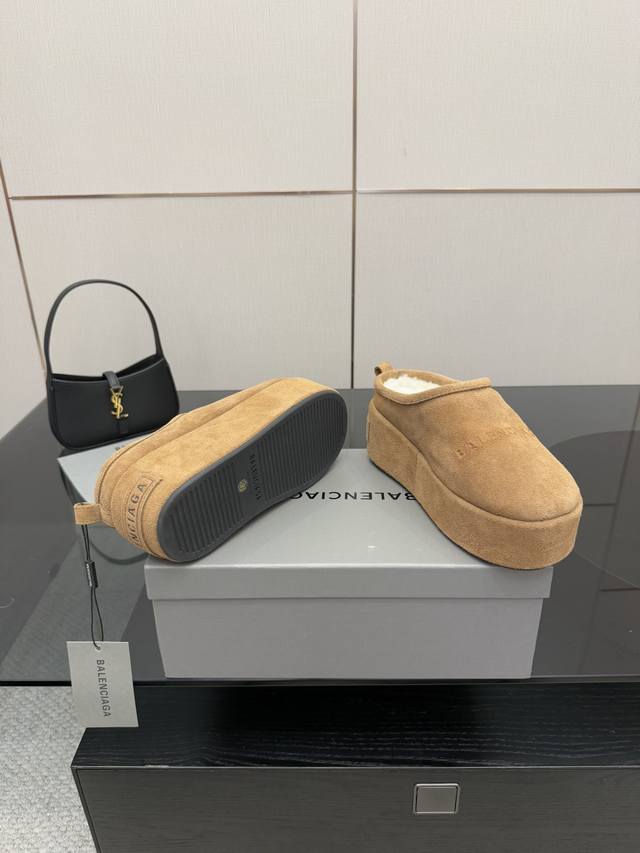Balenciaga 25Ss Fall/Winter New Thick-Soled Mule Furry Slippers
