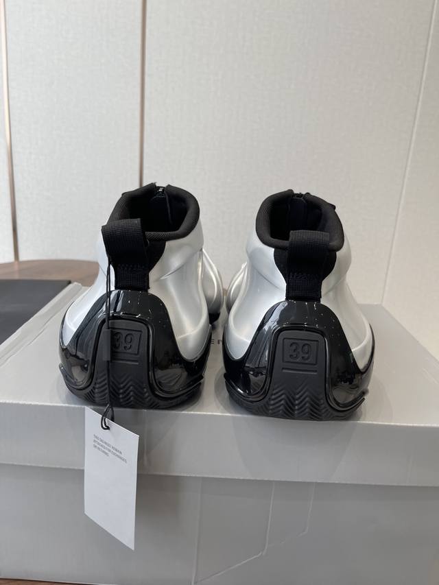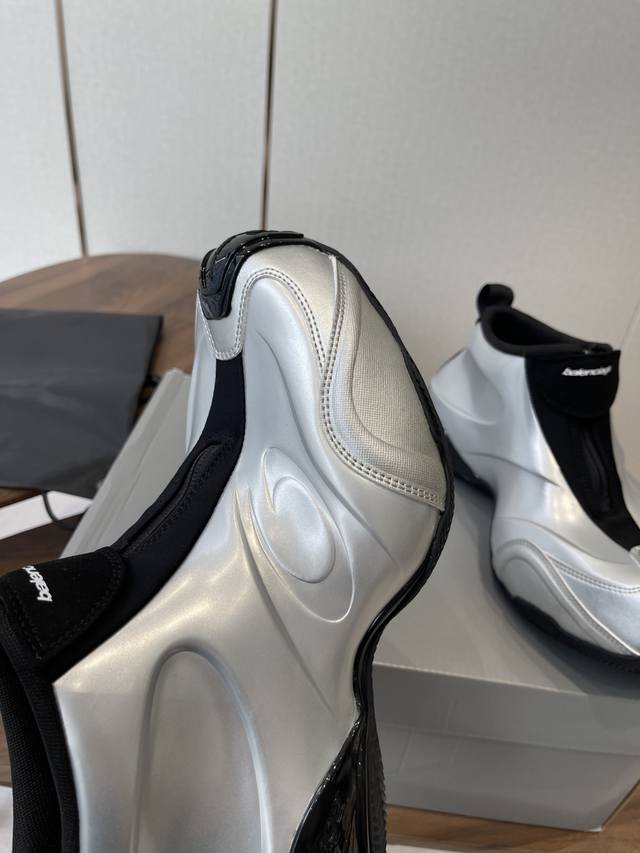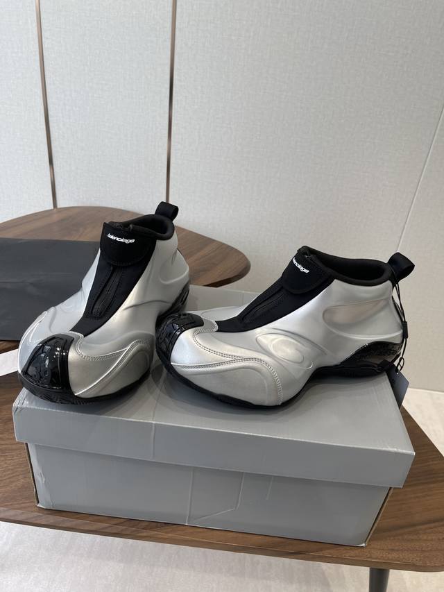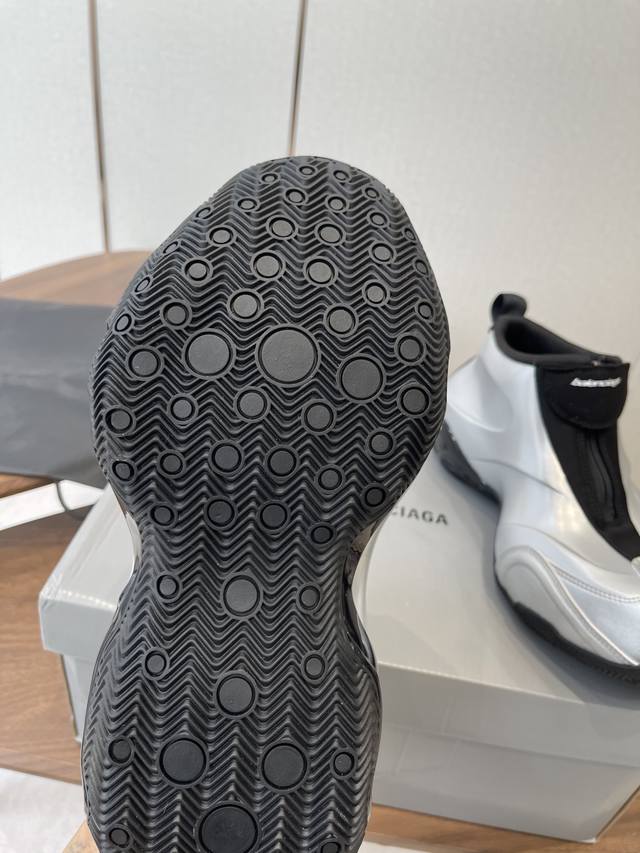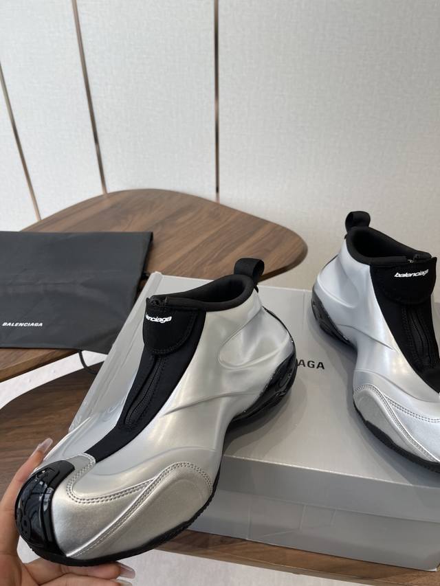 Balenciaga Basketball Series Platform Casual Sneakers DDD Basketball sneakers, crafted from recycled materials, create visual tension with exaggerated and bold athletic aesthetics, presented in five avant-garde colorways. The shoe features an embossed Loop Sports Icon logo on the side, a zipper and Velcro closure, and handwritten size markings on the toe and heel. DDD Material: Original custom imported technical fabric; Lining: Custom imported breathable mesh; Outsole: Original molded anti-slip rubber material. DDD Sole thickness: 6cm. DDD Size: Men's 38-45. DDD