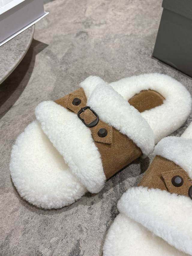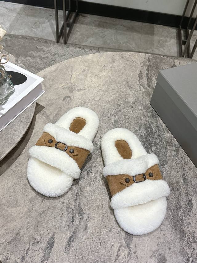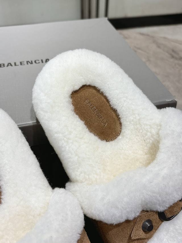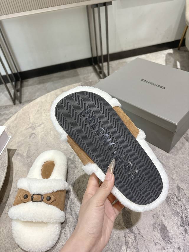 Balenciaga Fall/Winter 2025 New Style Furry Slippers! A trendy winter item from Balenciaga! High-end feel, a favorite among European and American socialites, celebrities, and influencers. Exquisite upper stitching, fluffy and soft against the skin. A winter essential, stylish yet understated. Material: Cow suede/wool. Sole: Original rubber, non-slip and wear-resistant. Size: 35-39. Size 40 is custom-made and non-refundable.