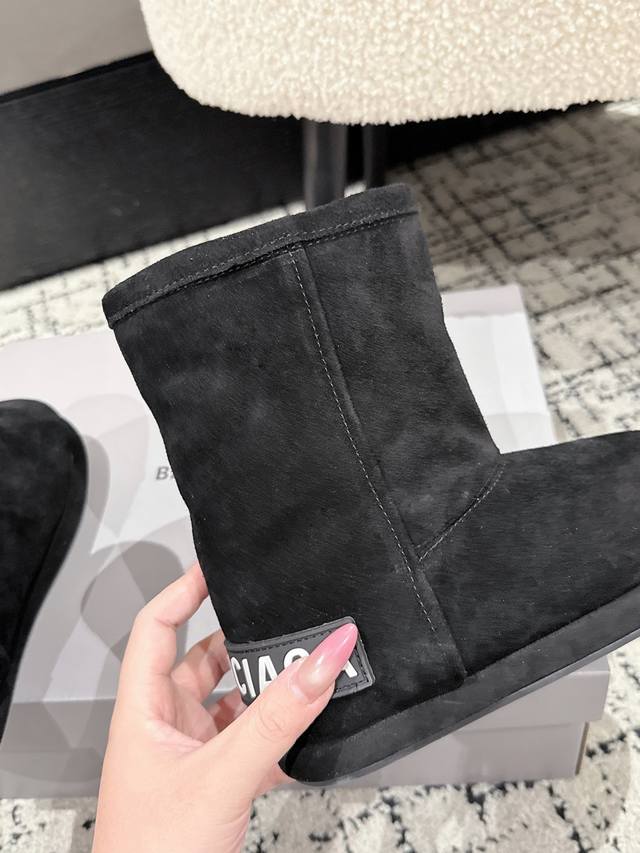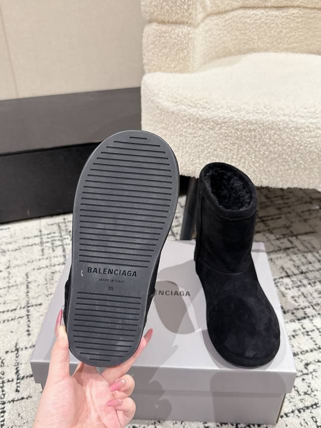 Balenciaga Fall/Winter New Arrival Size 25 Mid-Calf Pure Wool Thick-Soled Snow Boots
